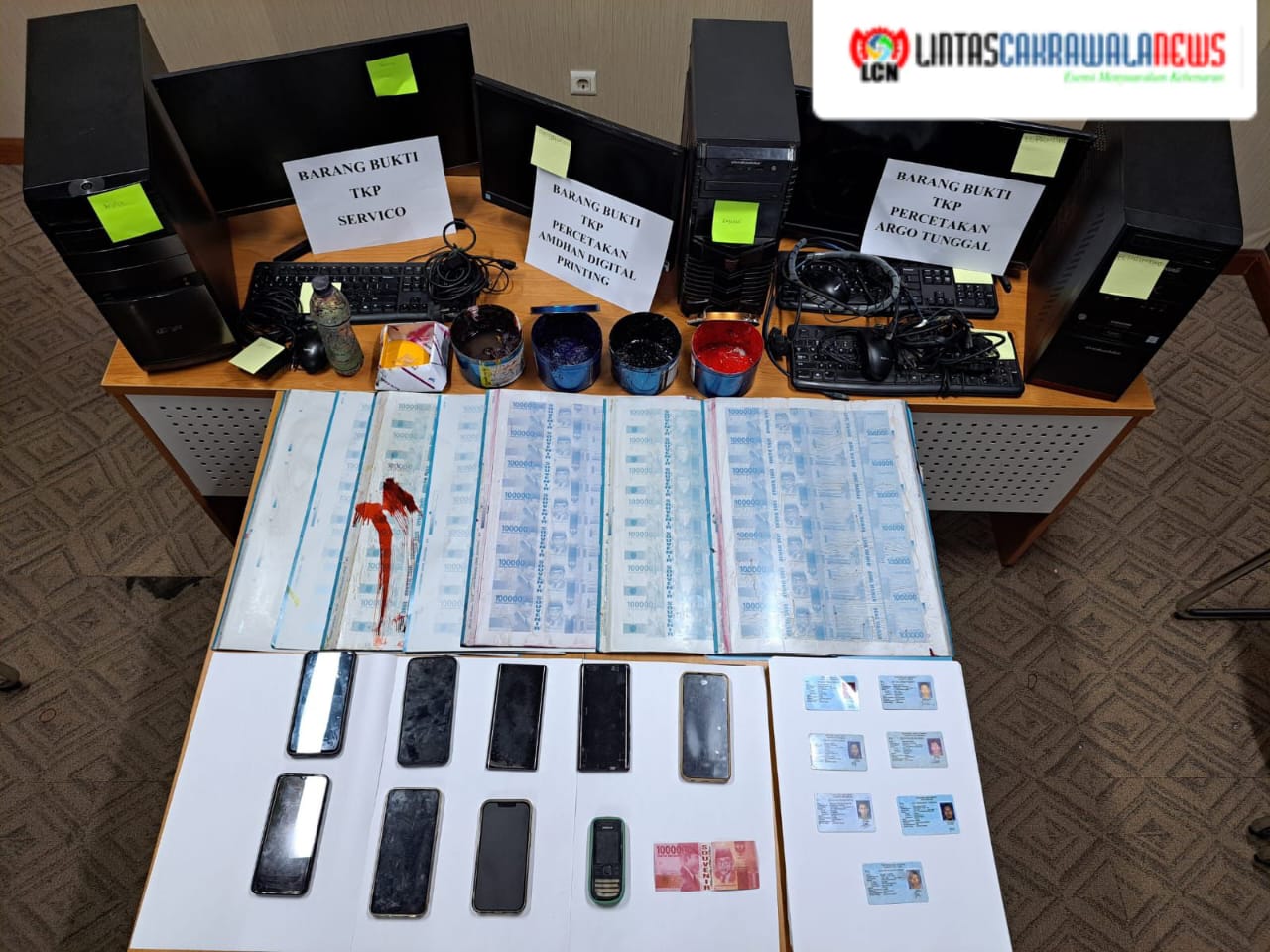 LINTASCAKRAWALANEWS.COM, JAKARTA – Bareskrim Polri melakukan penggerebekan sebuah rumah produksi uang palsu di dua lokasi wilayah Bekasi, Jawa Barat (Jabar). Penggerebekan itu pun berujung penangkapan 8 tersangka, yakni SUR, SU, IL, AS, MFA, EM, SUD, dan JR.