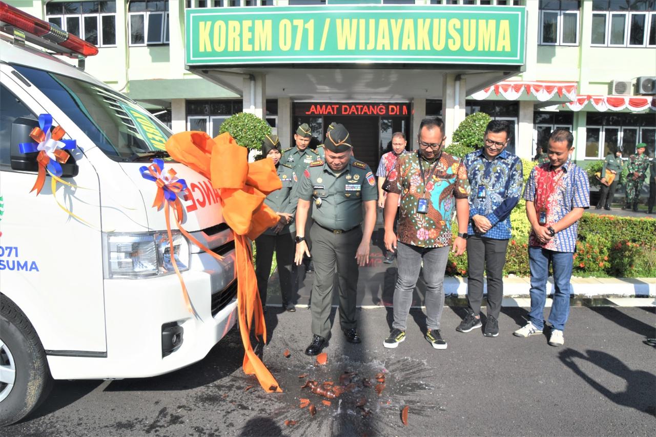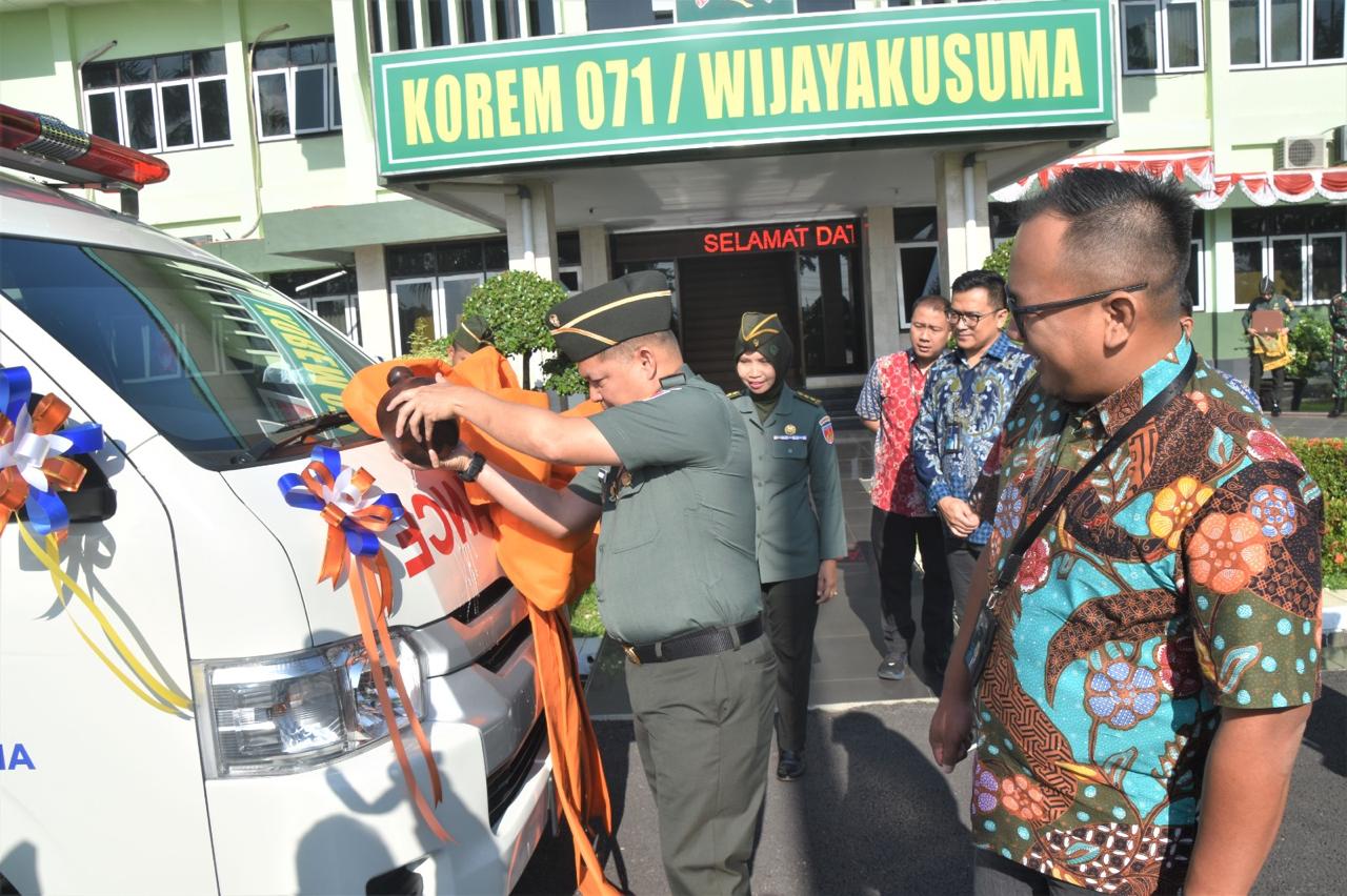 LINTASCAKRAWALANEWS.COM | BANYUMAS – Danrem 071/Wijayakusuma Kolonel Inf Jamaluddin, S.I.P., M.I.P, menerima Hibah satu unit Mobil Ambulance Hiace VIP dari BRI Cabang Purwokerto.