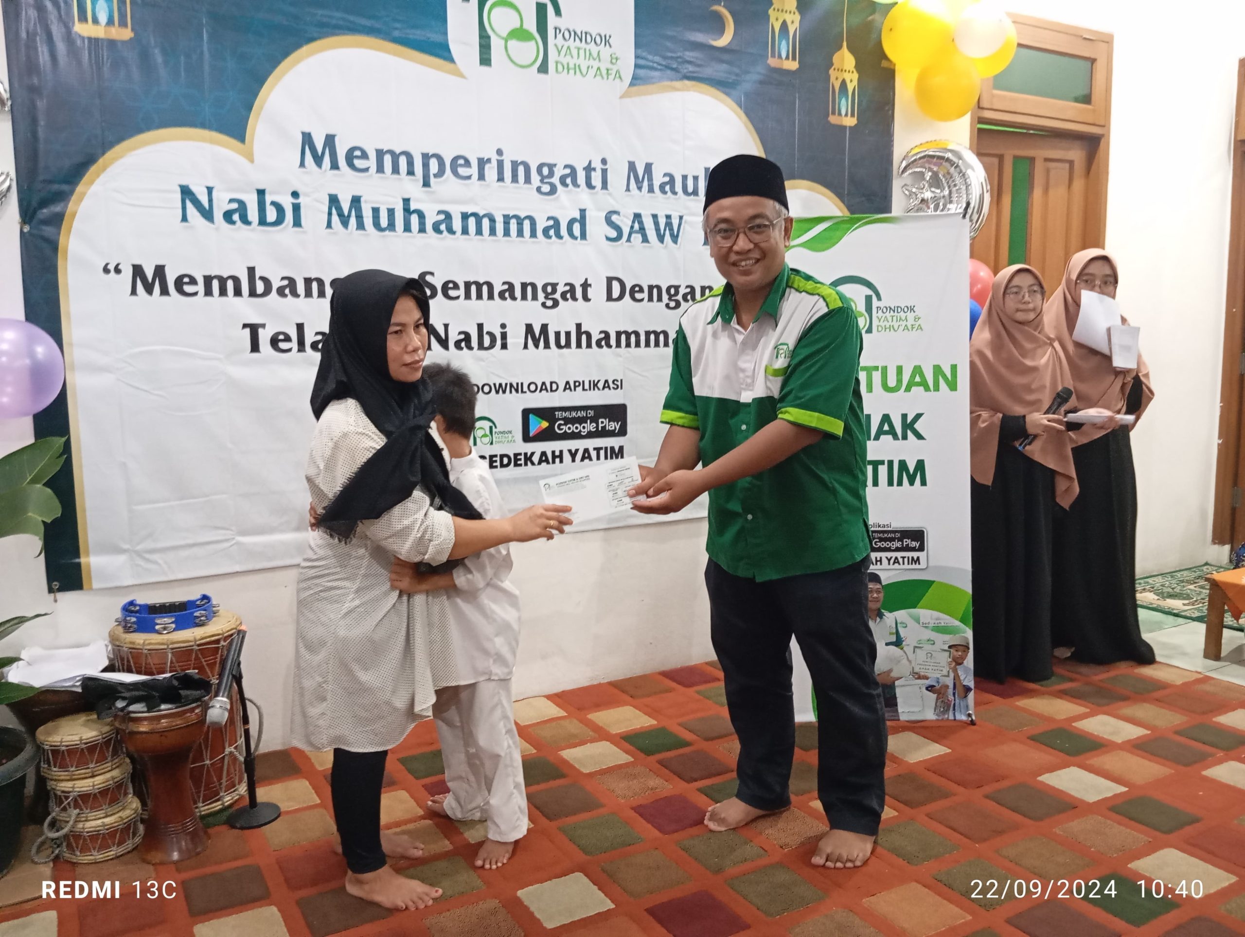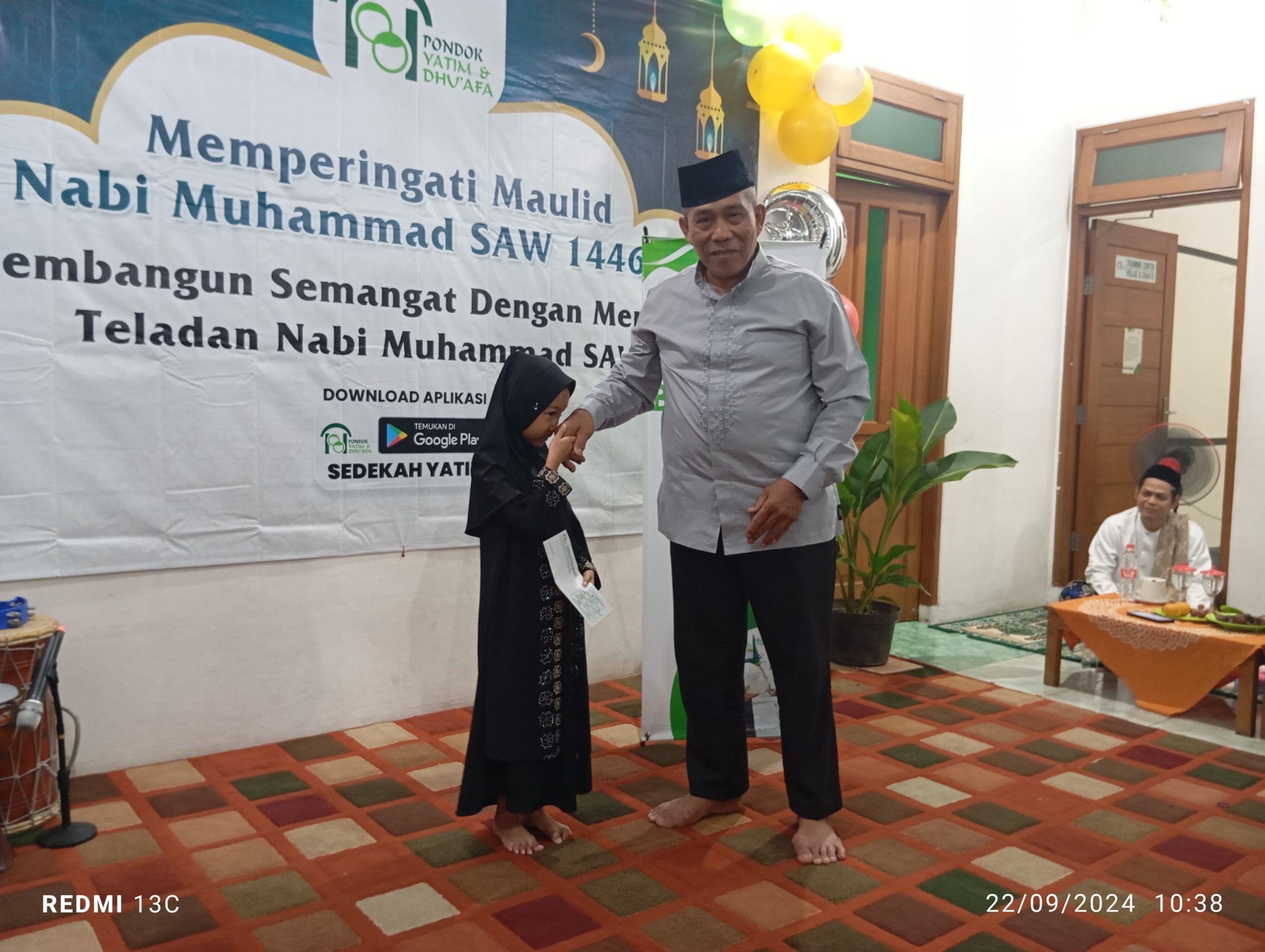 Rangkaian acara peringatan Maulid Nabi Muhammad SAW di Pondok Yatim dan Dhuafa antara lain kata sambutan dari Ketua RW.02 Kelurahan Meruya Utara Bapak Mayor TNI (Purn) Misan. Dilanjutkan dengan penampilan marawis oleh Anak Asuh Asrama Karang Tengah dan Aarama Neroktog. Pembacaan Mars dan Ikrar Santri oleh Anak Asuh Asrama Srengseng. Nasyid oleh Anak Asuh Meruya Selatan dengan judul “Ku Bangga Jadi Santri”. Pembacaan puisi oleh Anak Asuh Asrama Tomang dengan judul ” 12 Rabiul Awwal Tahun Gajah”. Dilanjutkan dengan Nasyid oleh Anak Asuh Asrama Kembang Kerep dan Asrama Cengkareng dengan judul “Waktu Sahar”. Kemudian penampilan Drama oleh Anak Asuh Asrama Tanjung Barat, Asrama Tanah Merdeka dan Asrama Pancoran dengan judul ” Sunan Kalijaga Mencari Jati Diri”. Serta Warawis untuk menyambut Ustadz oleh Anak Asuh Asrama Karang Tengah dan Neroktog. Acara juga semakin meriah dengan adanya games berupa kuis interaktif berhadiah.