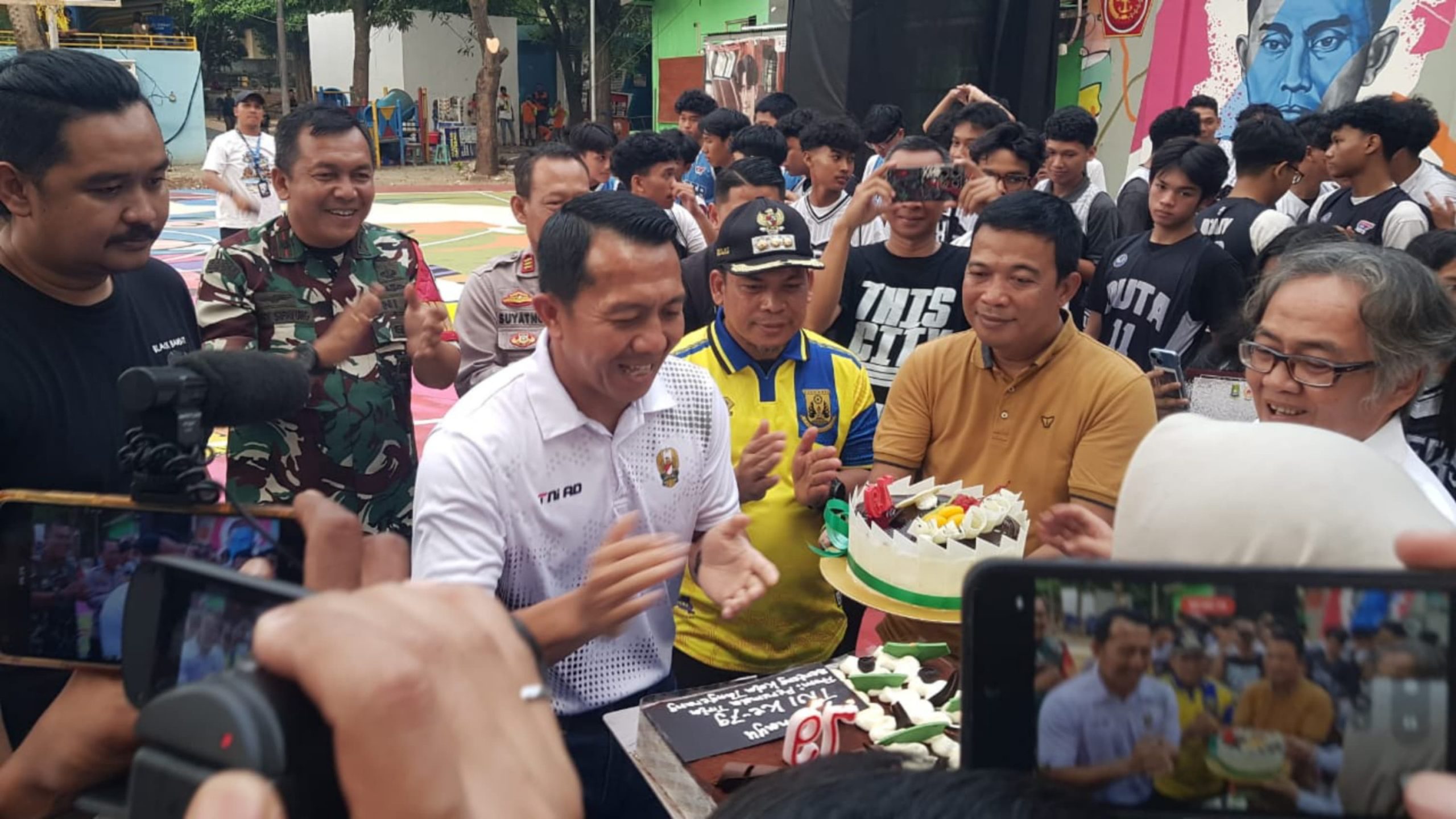 LINTASCAKRAWALANEWS.COM, TANGERANG – Dalam rangka memperingati Hari Ulang Tahun ke-79 Tentara Nasional Indonesia (TNI), Komandan Koramil 01/Tangerang Mayor Inf Jefriansen Sipayung, S.E., S.H., mendampingi Komandan Kodim 0506/Tangerang Letkol Inf Ary Sutrisno, S.I.P., dan PJ Walikota Kota Tangerang Dr. Nurdin, S.Sos., M.Si., dalam acara Peresmian Lapangan Basket dan Mural Jenderal Ahmad Yani, yang bertempat di Lapangan Basket Ahmad Yani, Jl. Jend. Ahmad Yani No.15, RT.002/RW.001, Kelurahan Sukarasa, Kecamatan Tangerang, Kota Tangerang, Banten. Minggu (6/10/2024).