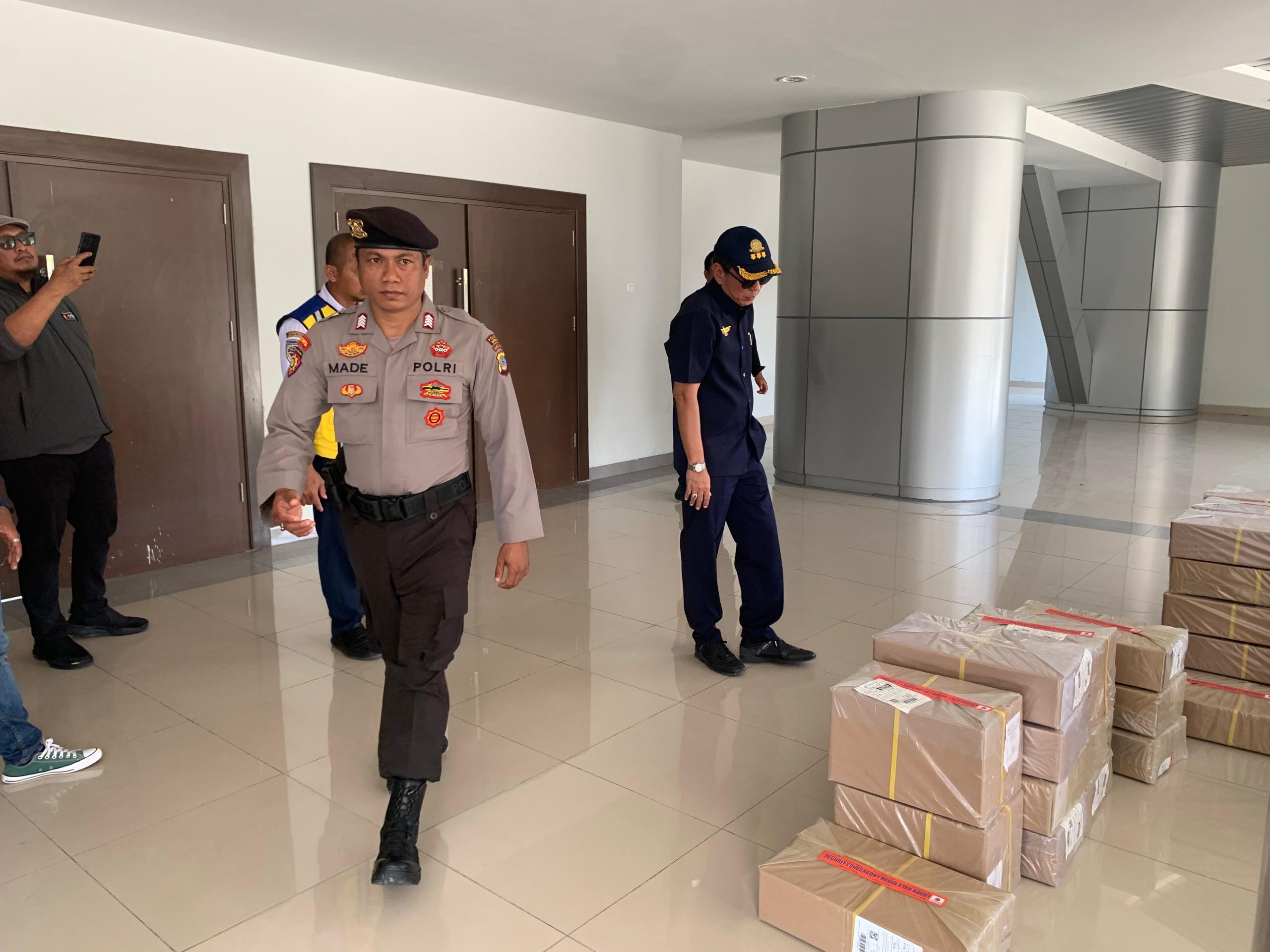Kepala Operasi (Kaops) Mantap Praja Tinombala Kombes Pol. Yohanes Afri Budi Slamet Riyadi, SIK, SH, MM melalui Kaset Ops AKBP Rahmad Lubis memimpin langsung pengamanan kedatangan surat suara Pilkada 2024 di Bandara Mutiara Sis Aljufri, Palu, Jumat (18/10/2024) pagi.
