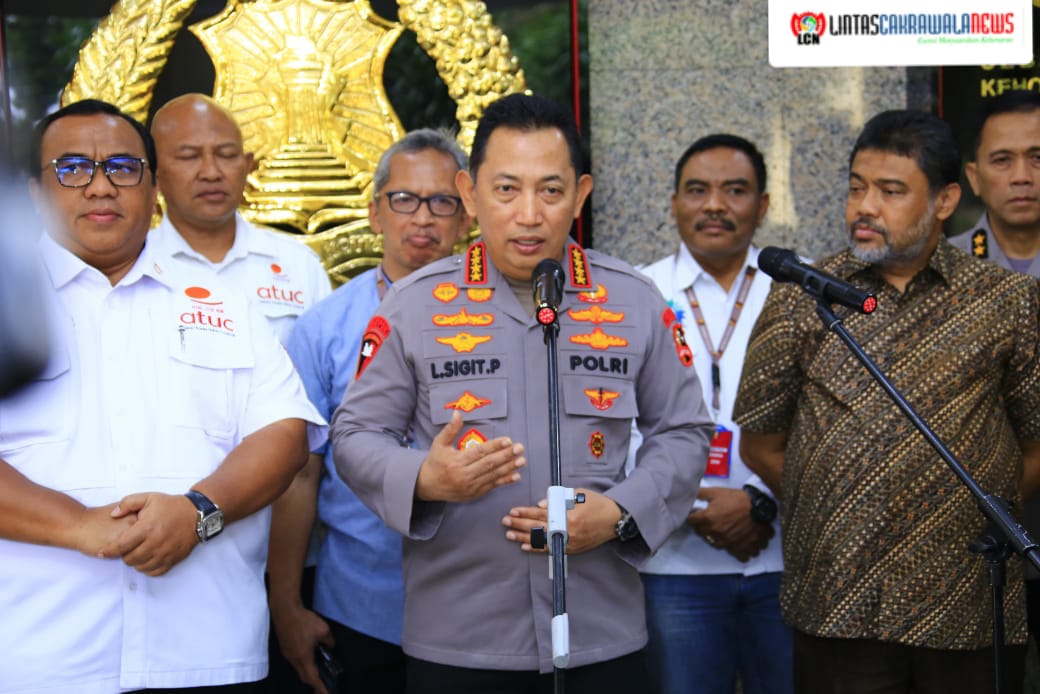 LINTASCAKRAWALANEWS.COM, Jakarta – Kapolri Jenderal Polisi Drs. Listyo Sigit Prabowo menerima audiensi kelompok buruh. Hadir mendampingi Irwasum Polri Komjen. Pol. Ahmad Dofiri, Kabareskrim Komjen. Pol. Wahyu Widada, Kadiv Propam Polri Irjen. Pol. Abdul Karim, dan Kadiv Humas Polri Irjen. Pol Sandi Nugroho.
