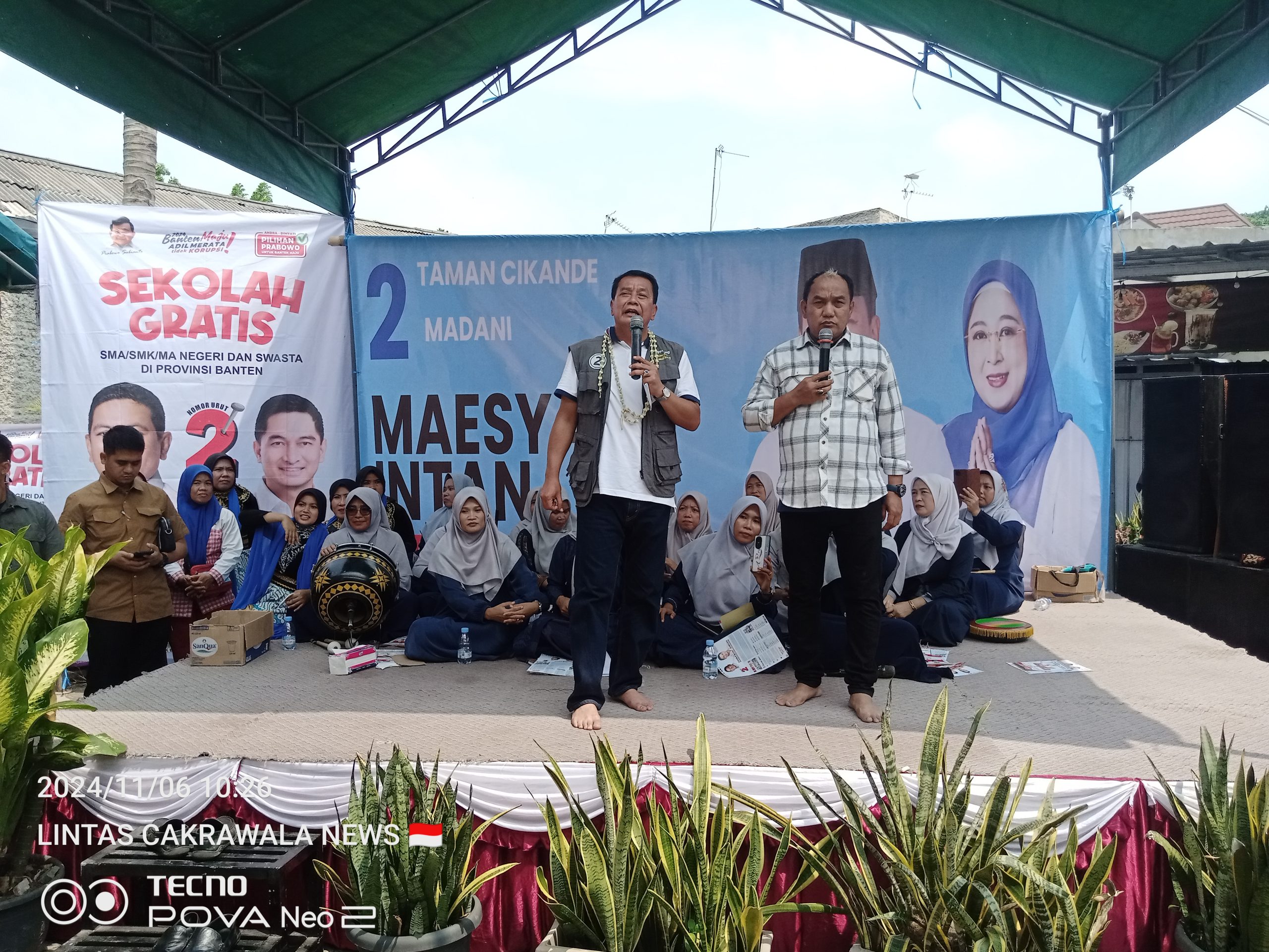 LINTASCAKRAWALANEWS.COM, || TANGERANG – Calon Bupati Tangerang nomor urut 2 Mochamad Maesyal Rasyid yang di inisiasi Relawan MADANI (Maesyal Rasyid dan Intan) berkunjung dan menyapa ratusan warga di perumahan Taman Cikande, Desa Cikande, Kecamatan Jayanti, Kabupaten Tangerang Banten, Rabu, (06/11/2024) pagi.