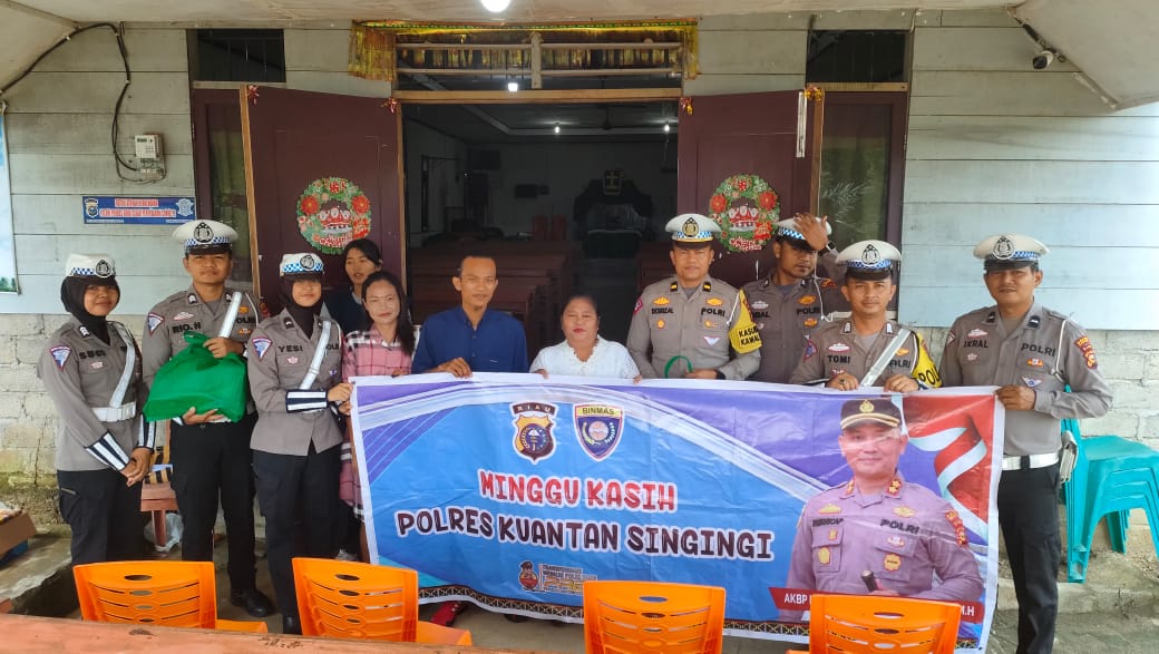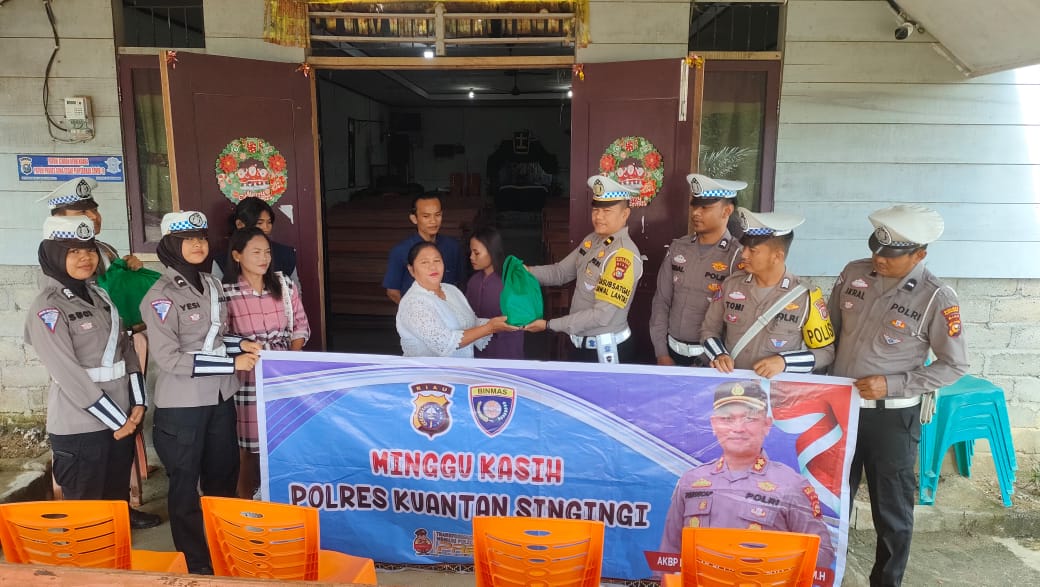 Dialog dengan Jemaat Gereja, Anggota Sat Lantas Polres Kuansing berdialog dengan jemaat, mendengarkan aspirasi, serta mendiskusikan berbagai permasalahan yang dihadapi oleh warga di wilayah tersebut. Pemberian Bantuan Sembako, Sebagai bentuk kepedulian terhadap masyarakat, Sat Lantas Polres Kuansing memberikan paket sembako sebanyak lima paket kepada jemaat gereja yang membutuhkan.