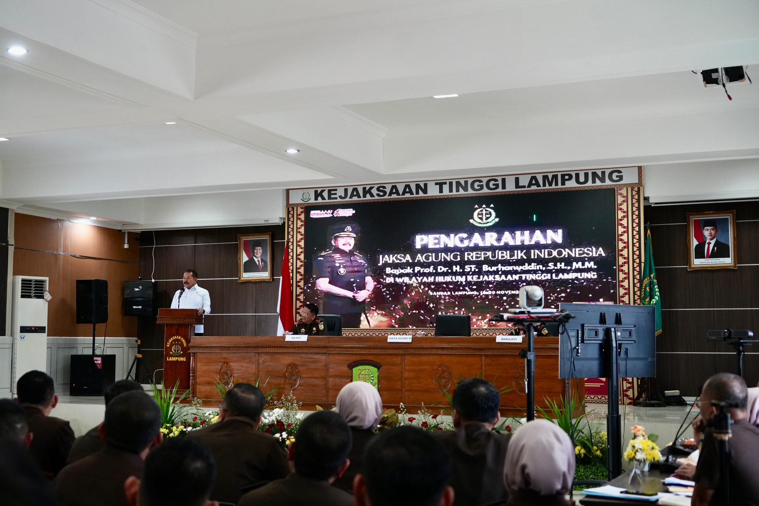 LINTASCAKRAWALANEWS.COM, Jakarta – Jaksa Agung Republik Indonesia ST Burhanuddin memberikan pengarahan penting pada kunjungan kerjanya ke Kejaksaan Tinggi Lampung pada Selasa s.d Rabu 19-20 November 2024. Jaksa Agung menyampaikan apresiasi atas kinerja yang telah dicapai dan menegaskan arahan strategis dalam mendukung reformasi hukum dan peningkatan layanan kepada masyarakat.