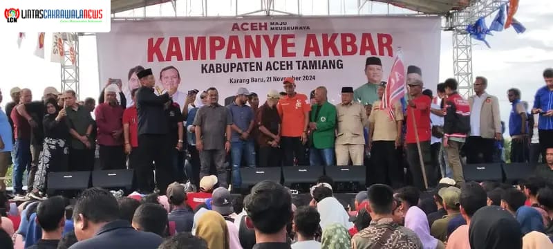LINTASCAKRAWALANEWS.COM, Aceh Tamiang – Ribuan masyarakat memadati Lapangan GOR Kecamatan Karang Baru, Kamis, 21 November 2024, untuk menghadiri kampanye akbar pasangan calon Bupati dan Wakil Bupati Aceh Tamiang, Armia Fahmi-Ismail. Dalam orasinya, pasangan ini memaparkan komitmen mereka untuk menyelesaikan berbagai permasalahan utama di Bumi Muda Sedia, seperti pembangunan pusat ibadah, penanganan banjir, dan revitalisasi proyek mangkrak.