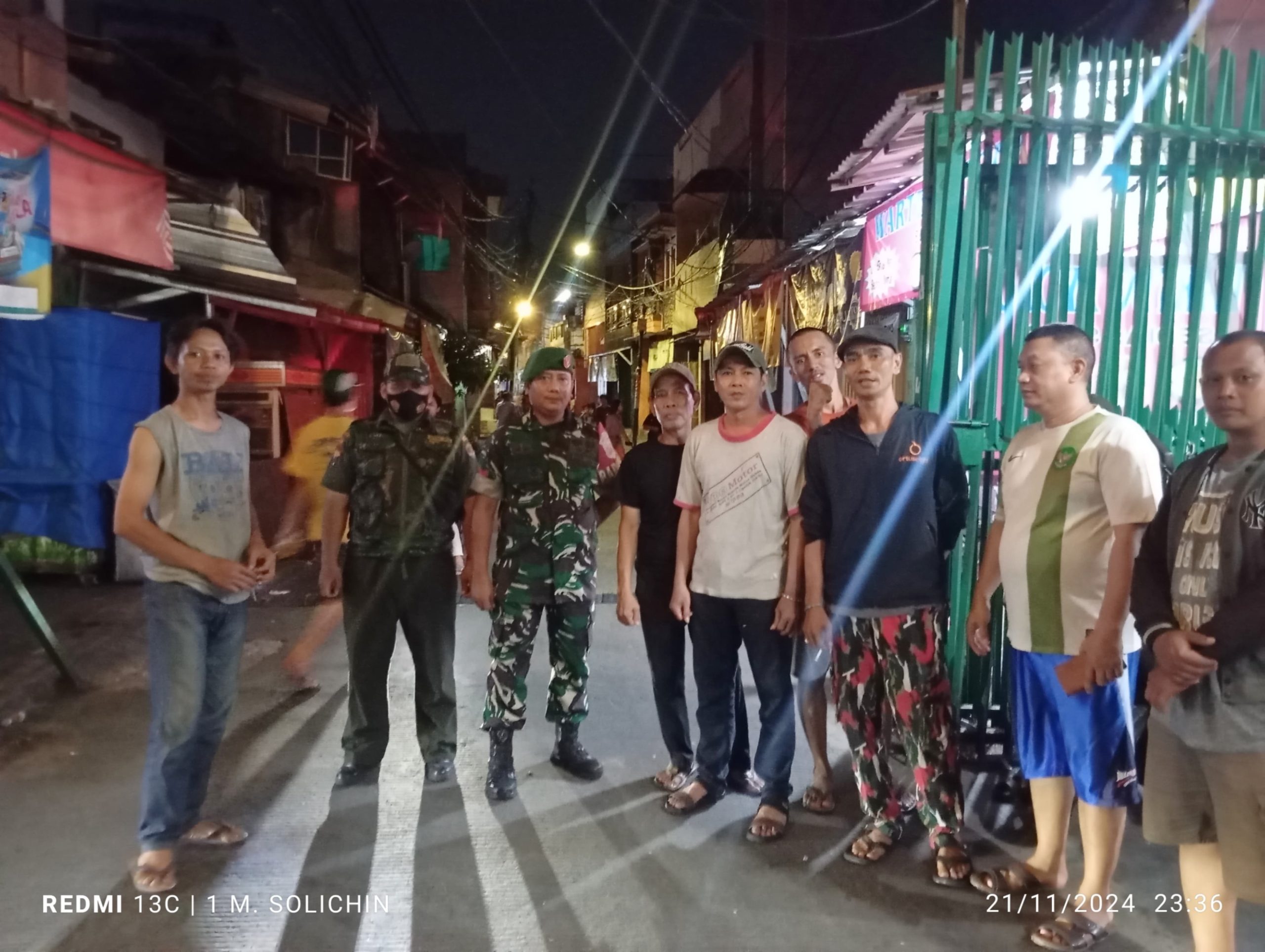 LINTASCAKRAWALANEWS.COM, || JAKARTA BARAT – Dalam rangka menjaga wilayah binaan aman dan nyaman, Babinsa Koramil 03/Grogol Petamburan – Kodim 0503/Jakarta Barat Koptu Hendrik melaksanakan patroli rutin dan berhasil membubarkan tawuran secara humanis bersama Mitra Jaya Koramil 03/GP dan Warga Masyarakat, di Jl. Kota Bambu Utara 1 perbatasan RW.01 Kelurahan Kota BambunUtara dan RW.10 Kelurahan Jatipulo, Kecamatan Palmerah, Jakarta Barat. Kamis Malam – Jumat Dinihari (21-22 November 2024).