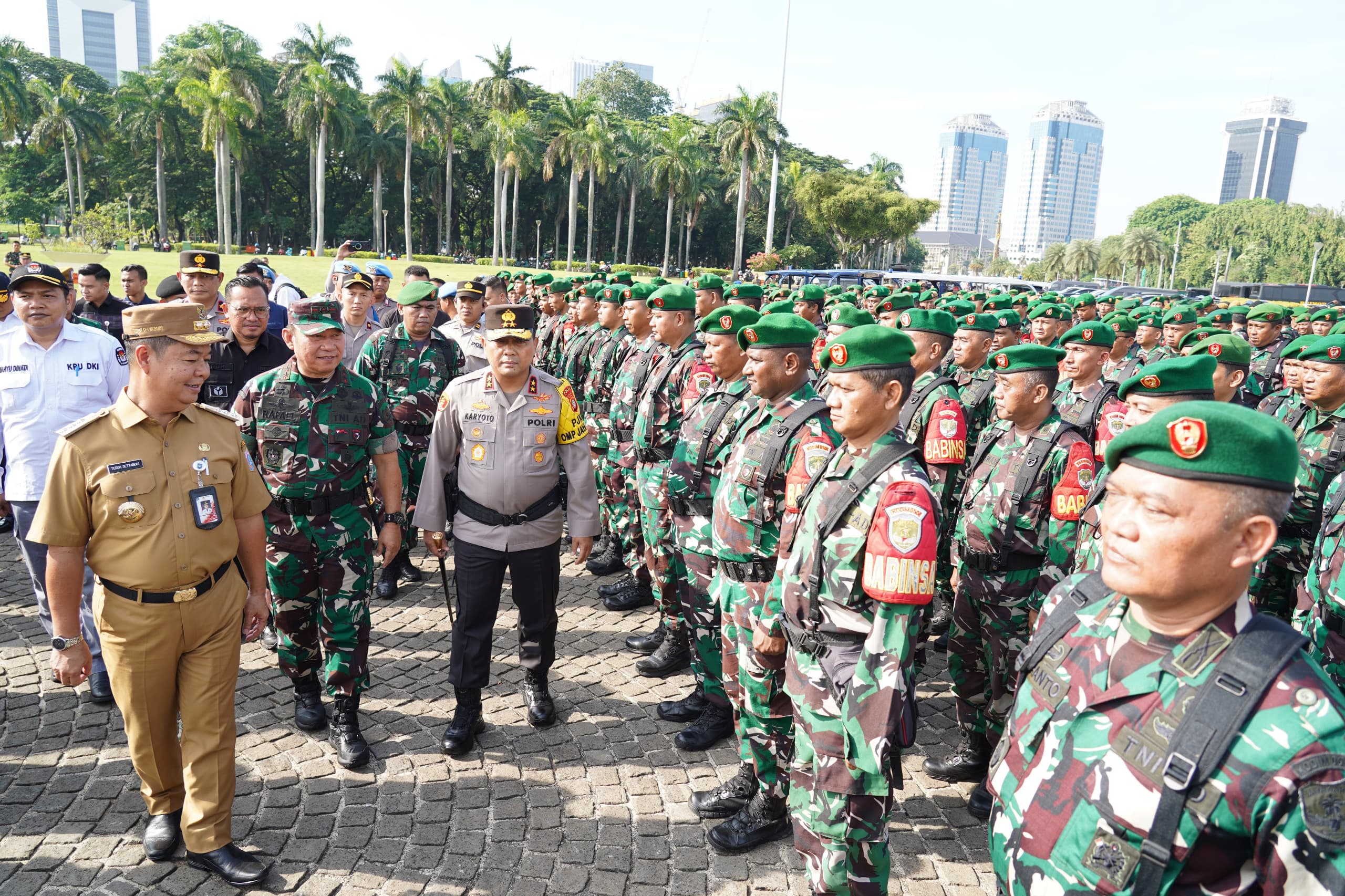 Apel gabungan ini turut dihadiri oleh Danrem 051/Wkt, Danrem 052/Wkr, Pejabat Teras Kodam Jaya, Pejabat Utama Polda Metro Jaya, Ketua Bawaslu Provinsi DKI Jakarta, Ketua KPU Provinsi DKI Jakarta serta Pejabat Pemprov DKI Jakarta.