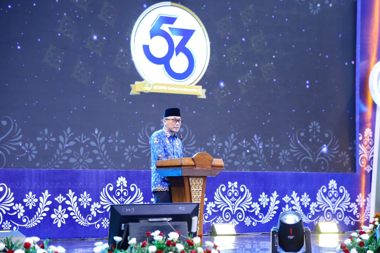Ketua Umum DP KORPRI Nasional Prof Dr. Zudan Arif Fakrulloh, SH, MH dalam Laporan puncak acara HUT ini, mengucapkan Dirgahayu KORPRI, Selamat ulang tahun ke 53 untuk seluruh anggota KORPRI dimanapun bertugas. Tetaplah semangat, berkarya dan setia kepada negara sampai akhir. Pada tahun ini, tema Peringatan HUT KORPRI adalah KORPRI untuk Indonesia, dimaksudkan agar seluruh ASN anggota KORPRI mampu mendarmabaktikan seluruh kekuatan dan kemampuan terbaiknya untuk Indonesia.