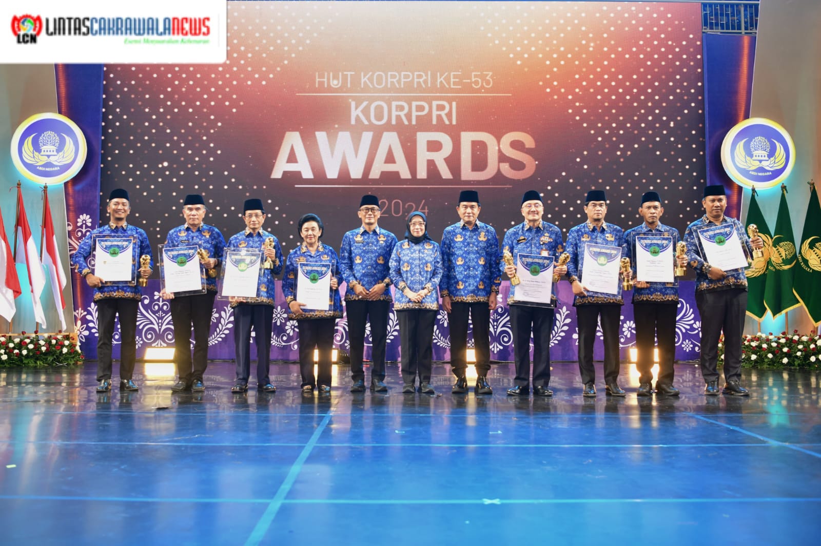 Semarak perayaan puncak acara HUT ke-53 KORPRI Nasional Tahun 2024 mulai dari Tarian Selamat Datang persembahan dari Kementerian Kebudayaan, lagu nyanyian dan tari kreasi dari Tim 2nd Chance, dan Pemberian KORPRI Award dengan berbagai kategori yaitu Lifetime Achievement, kategori Kepengurusan, dan kategori Special Achievement, Kategori Mitra dan Kategori Inspiring serta sambutan Bapak Presiden, yang dibacakan oleh MenpanRB, Ibu Rini Widyantini yang juga sebagai Penasihat Harian Korpri.