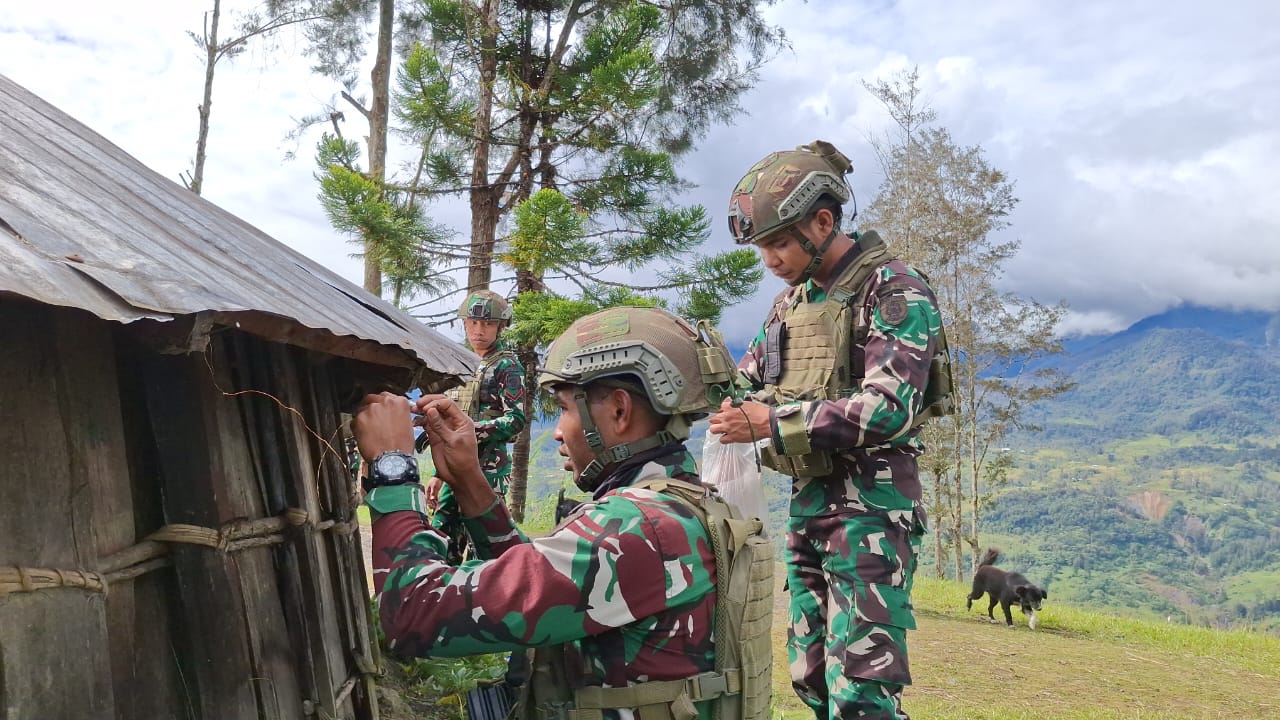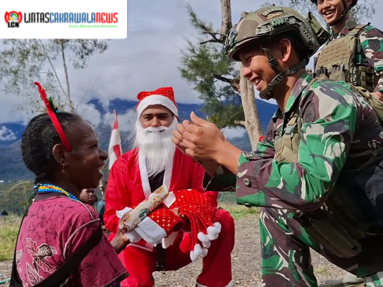 LINTASCAKRAWALANEWS.COM, WOMBURU – Dalam rangka memperingati Hari Raya Natal dan Tahun Baru 2025, Personel Titik Kuat Pintu Jawa Satgas Pamtas Mobile RI-PNG Yonif 323/Buaya Putih berbagi kado kepada masyarakat setempat, Kp. Womburu, Distrik Mage’abume, Kab. Puncak, Papua, Senin (23/12/2024).