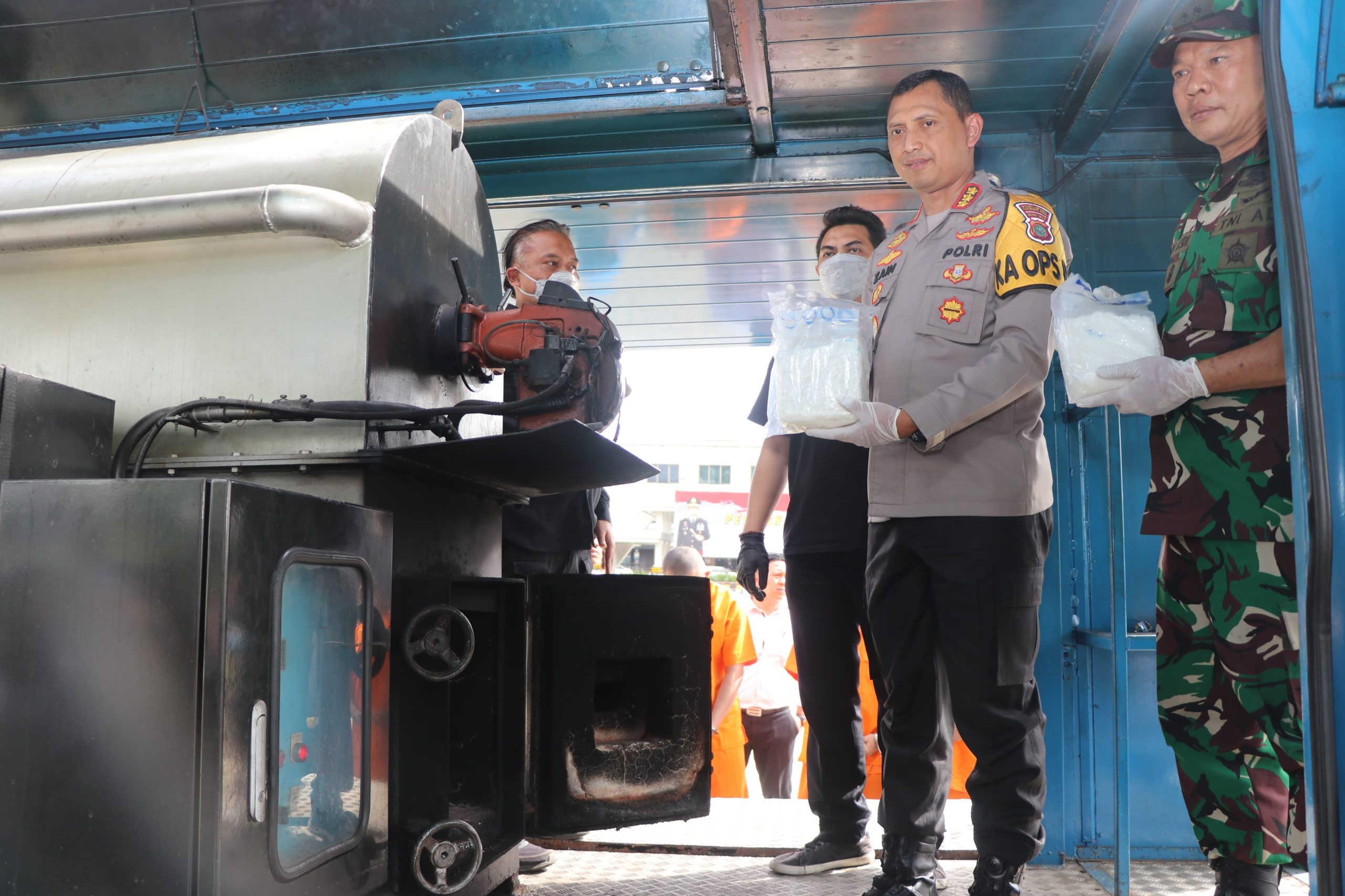 Pemusnahan barang bukti (BB) Sabu 17,7 Kilogram dan puluhan butir ekstasi itu dilakukan Polres Metro Tangerang Kota menggunakan Mobil Incinerators Boiler. Senin (30/12/2024).