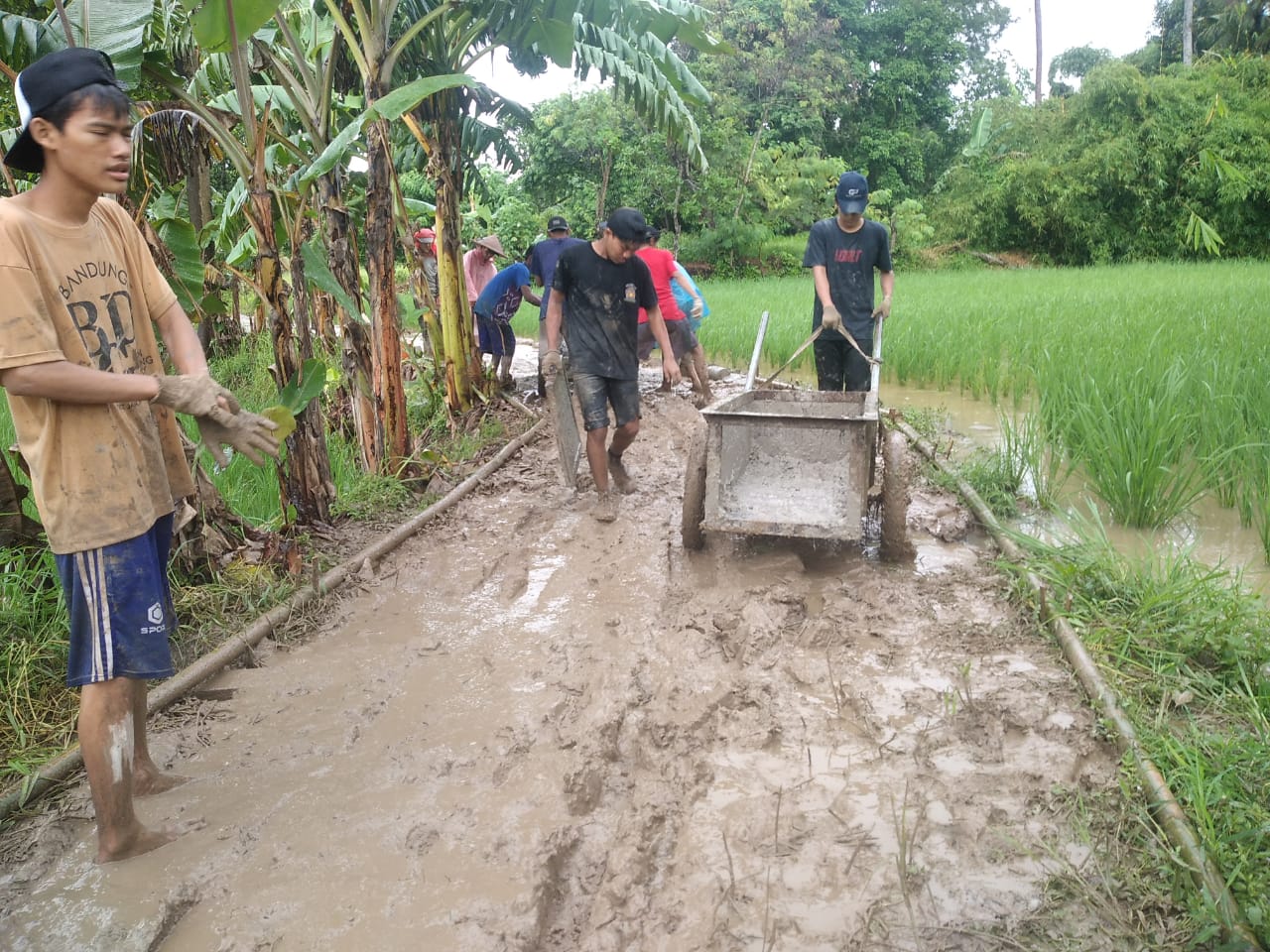 Suasana Kerjasama Gotong Royong yang menciptakan Atmosfir kerja sama antara Pemdes Kubang dan masyarakat Kp. Sabrang begitu membanggakan,dengan semangat gotong royong yang tinggi