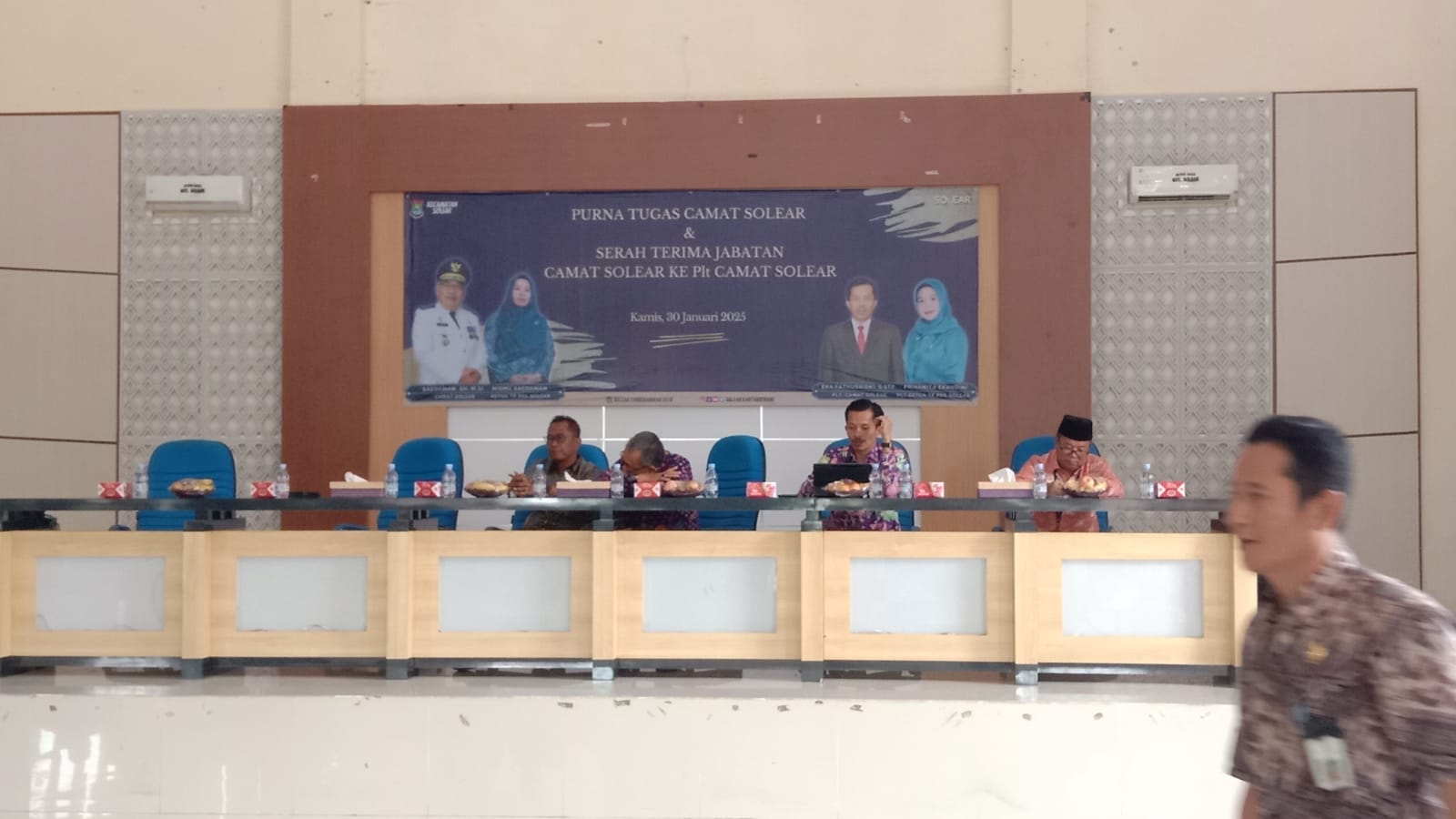 Hari ini pelaksanaan kegiatan purna tugas dan serah terima jabatan camat Solear diselenggarakan di Gedung Serba Guna Kec Solear pada Kamis (30/1/2025) pukul 10:00.wib.