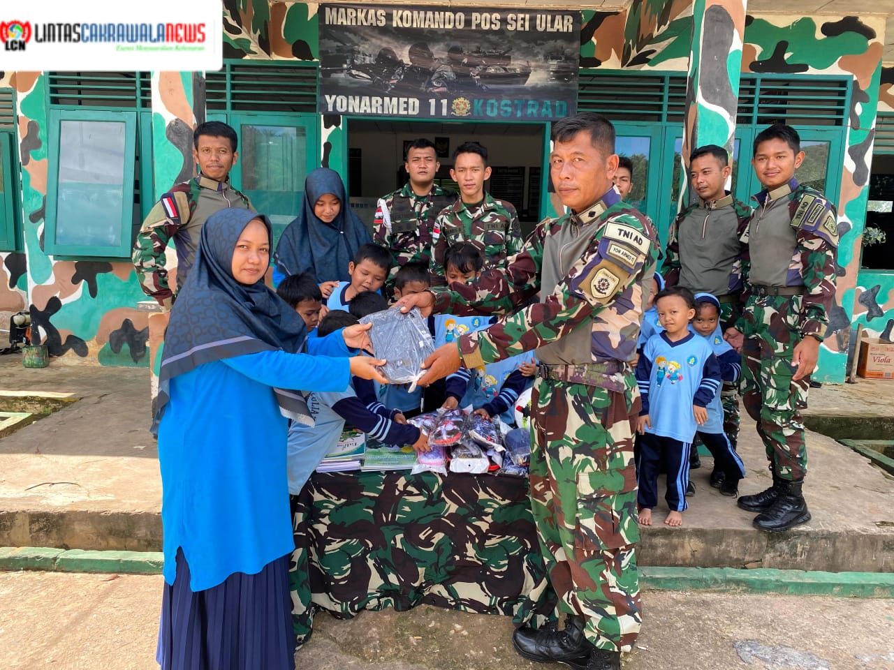 LINTASCAKRAWALANEWS.COM, Nunukan, 07 Februari 2025 – Satgas Pamtas Yonarmed 11 Kostrad Pos Sei Ular menerima kunjungan dari anak-anak Paud Tunas Mulia, Kecamatan Sei Manggaris, Kabupaten Nunukan. Kegiatan ini bertujuan untuk mengenalkan dunia militer kepada anak-anak sejak dini melalui pendekatan yang menyenangkan dan interaktif.