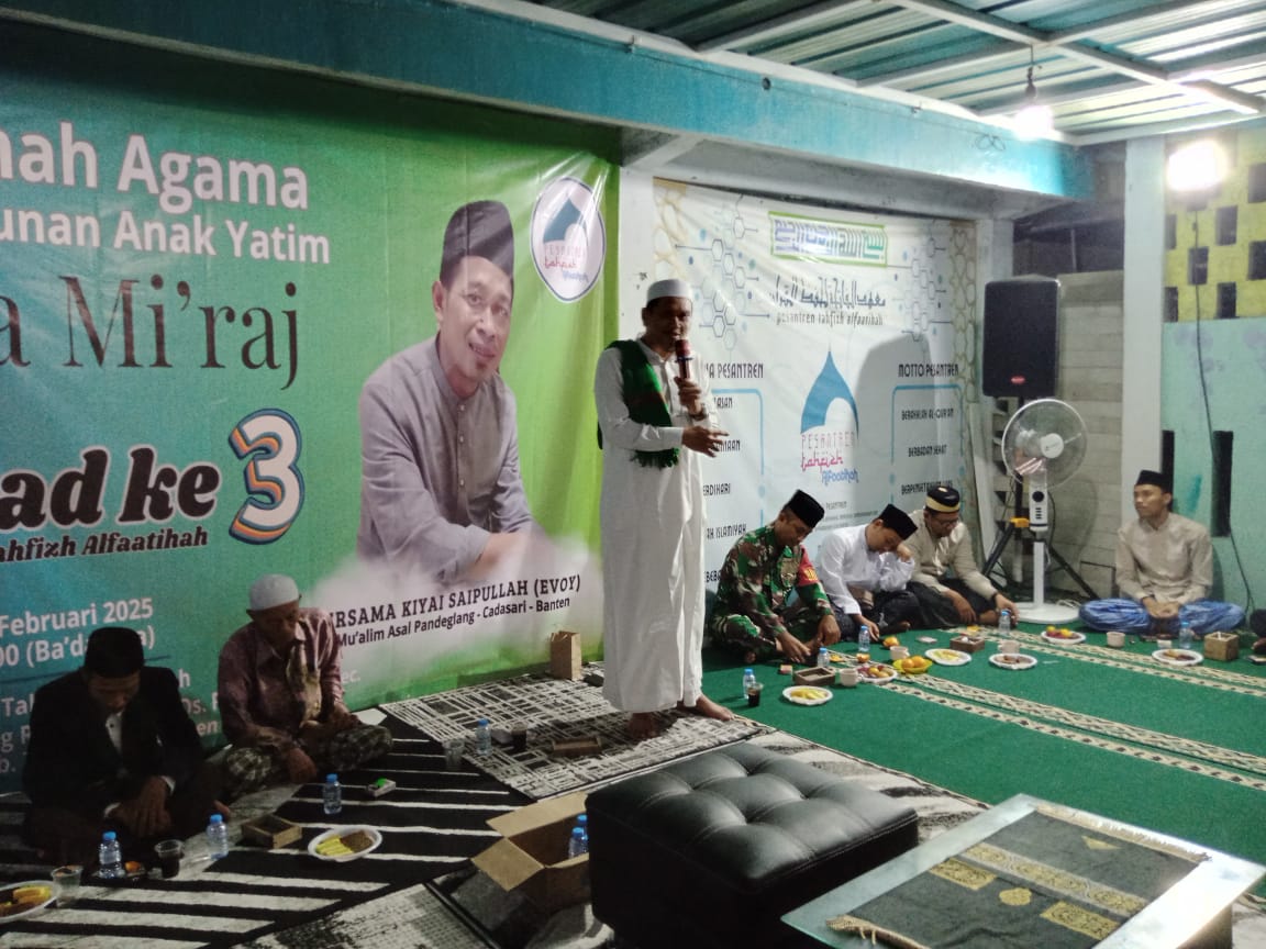 LINTASCAKRAWALANEWS.COM, || TANGERANG – Dalam rangka Memperingati Isra Mi’raj Nabi Muhamad SAW, Pondok Pesantren (Ponpes) Tahfidz Alfaatihah, yang beralamat di Kp. Gintung Rt.07/Rw.02 Desa Pasir Gintung, Kecamatan Jayanti, kabupaten Tangerang, menggelar acara peringatan Isra Mi’raj, dan santun anak yatim sekaligus Milad Ke-3 Pesantren Tahfidz Alfaatihah, pada Sabtu. (08/02/2025) malam