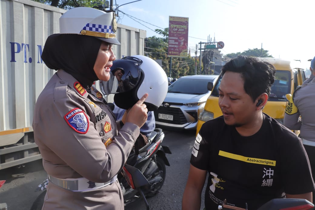 “Fokus kami pada operasi ini adalah edukasi dan penindakan ETLE, kami laksanakan pembagian leaflet dan helm gratis kepada para pengguna jalan, Harapannya, menjelang bulan puasa tingkat fatalitas kecelakaan menurun, serta kesadaran masyarakat dalam berlalu lintas meningkat sesuai harapan tujuan dari Operasi Keselamatan Maung 2025,” tutur AKP Riska.