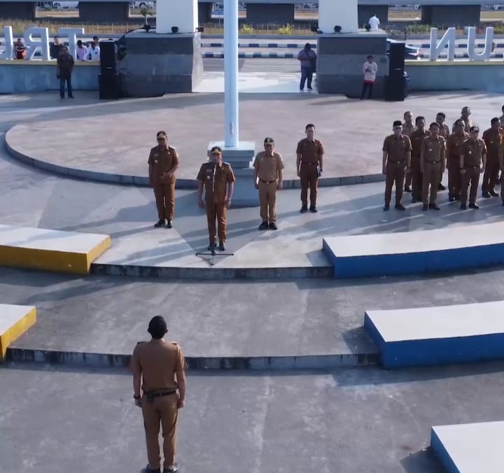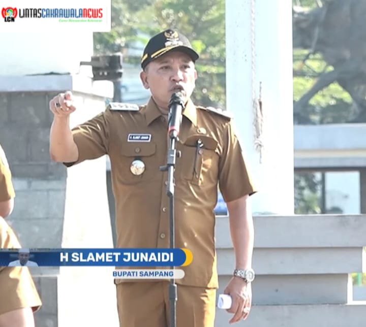 LINTASCAKRAWALANEWS.COM, Sampang – Pemerintah Kabupaten Sampang Madura Jawa Timur, gelar Apel bersama seluruh Apartur Sipil Negara (ASN) dilingkungan Alon-alon Trunojoyo, Bupati Sampang H. Slamet Junaidi dan Wakil H. Ahmad Mahfudz menyampaikan Arahan kepada seluruh ASN untuk pembangunan Kabupaten Sampang kedepan. Selasa, (08/04/2025).