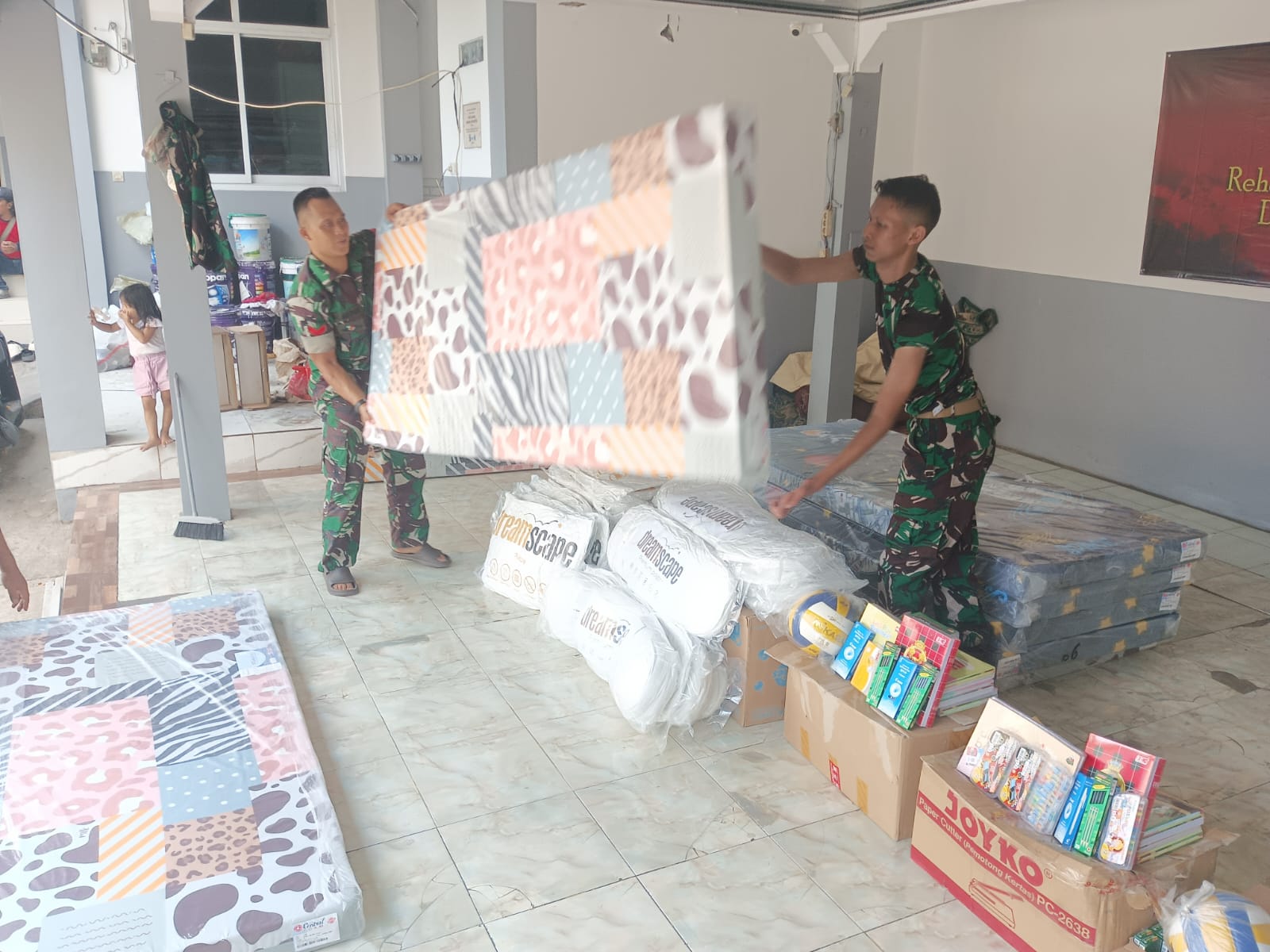 Bantuan yang diserahkan berupa kasur busa 42 buah lengkap dengan seprei dan bantal guling, peralatan belajar berupa buku, pulpen, pinsil dan crayon serta sarana bermain berupa satu set mandi bola, perosotan dan satu set ring basket mini.