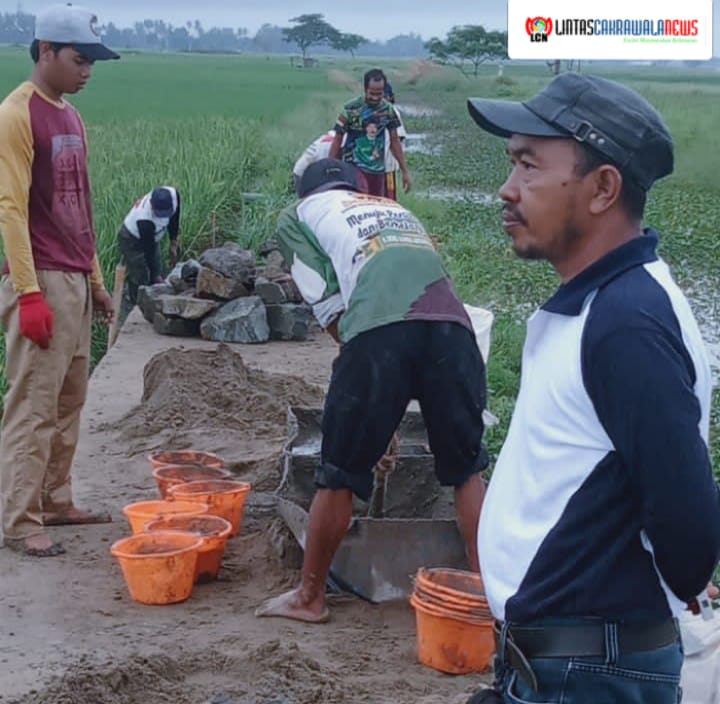 “Pemasangan tembok penahan tanah (TPT) untuk menjaga tanah badan jalan biar kuat dan tidak longsor terbawa air baik air hujan atau air irigasi.”terangnya