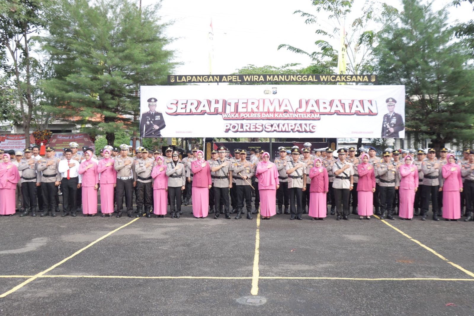 Upacara Sertijab dilaksanakan di lapangan Wira Manunggal Wicaksana Mapolres Sampang diikuti PJU Polres Sampang, Kapolsek Jajaran, perwira dan bintara Polres Sampang.