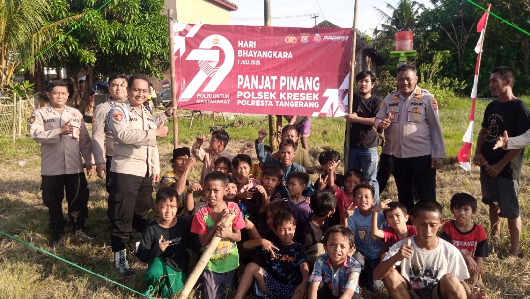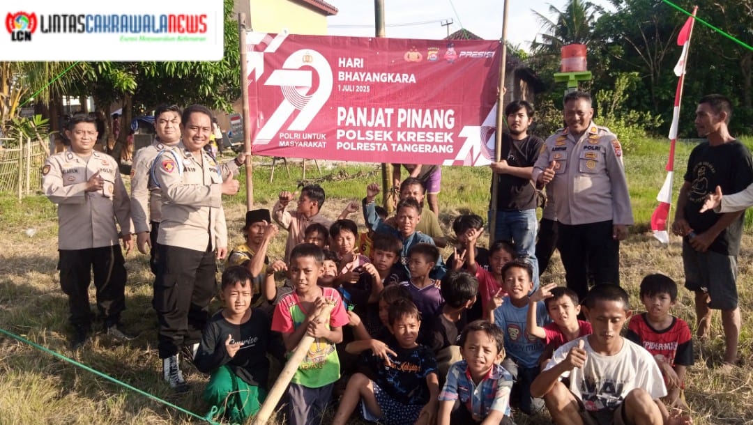 LINTASCAKRAWALANEWS.COM, ‎TANGERANG – Polsek Kresek Polresta Tangerang bersama warga Desa Cibetok, Kec. Gunung Kaler mengadakan lomba panjat pinang dan lomba karaoke memeriahkan Hari Bhayangkara ke-79, Selasa 1 Juli 2025