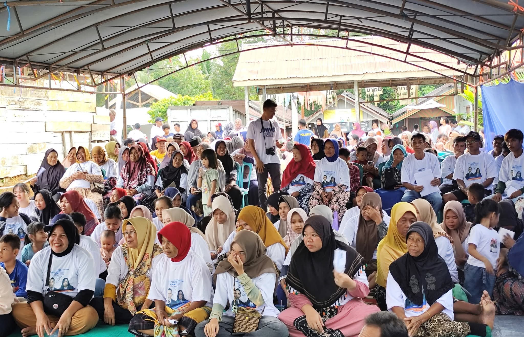 Kekompakan para emak-emak dan bapak-bapak untuk mendukung pasangan calon Jimmy-Indri terlihat saat silaturahmi Calon Bupati dan Wakil Bupati Jimmy-Indri dalm kampanye Dialogis dan Tatap Muka ke dua Desa tersebut.