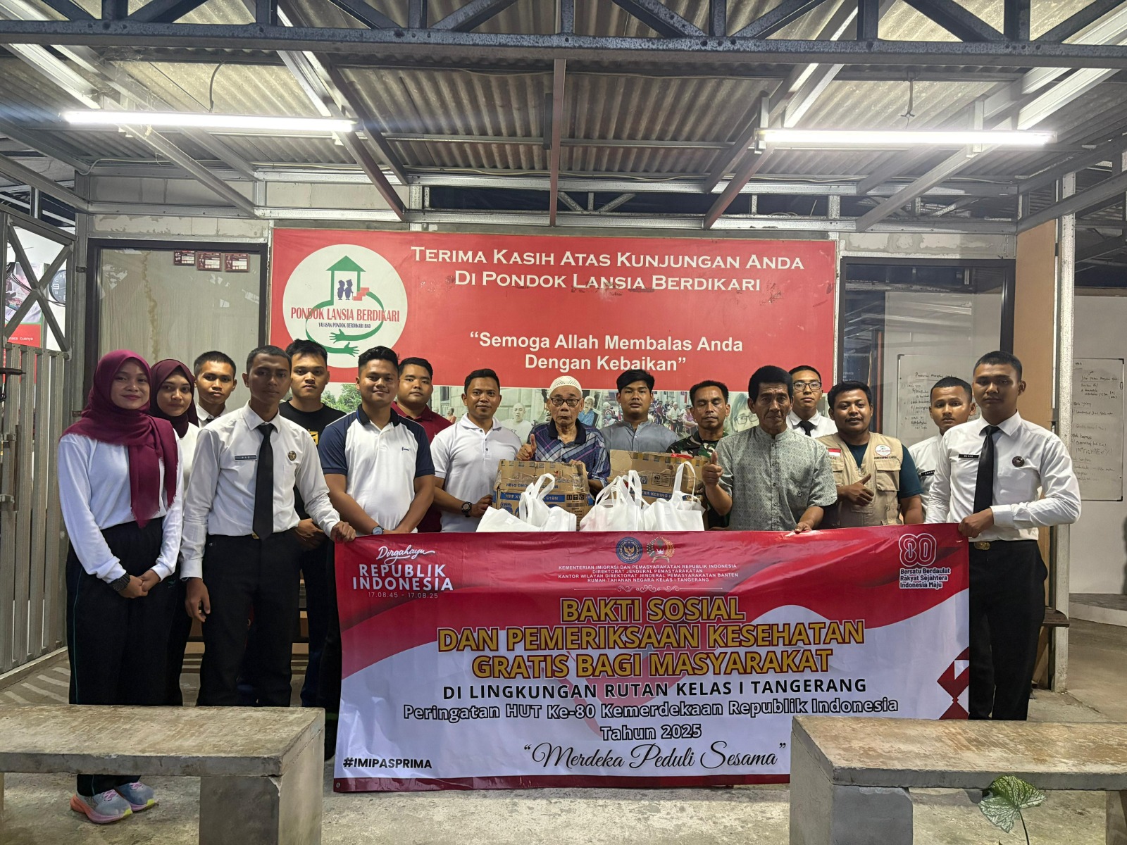 Pada kesempatan ini, Rutan Kelas I Tangerang bersama DWP membagikan 80 paket sembako sebagai wujud kepedulian terhadap masyarakat kurang mampu. Paket bantuan tersebut disalurkan langsung kepada warga Desa Taban dan juga kepada Pondok Lansia Berdikari Yayasan Pondok Berdikari BSD sebagai bentuk dukungan dan perhatian terhadap para lansia yang membutuhkan. Selain itu, warga juga mendapatkan layanan pemeriksaan kesehatan gratis yang mencakup pengecekan tekanan darah, pemeriksaan gula darah, serta konsultasi kesehatan oleh tenaga medis.