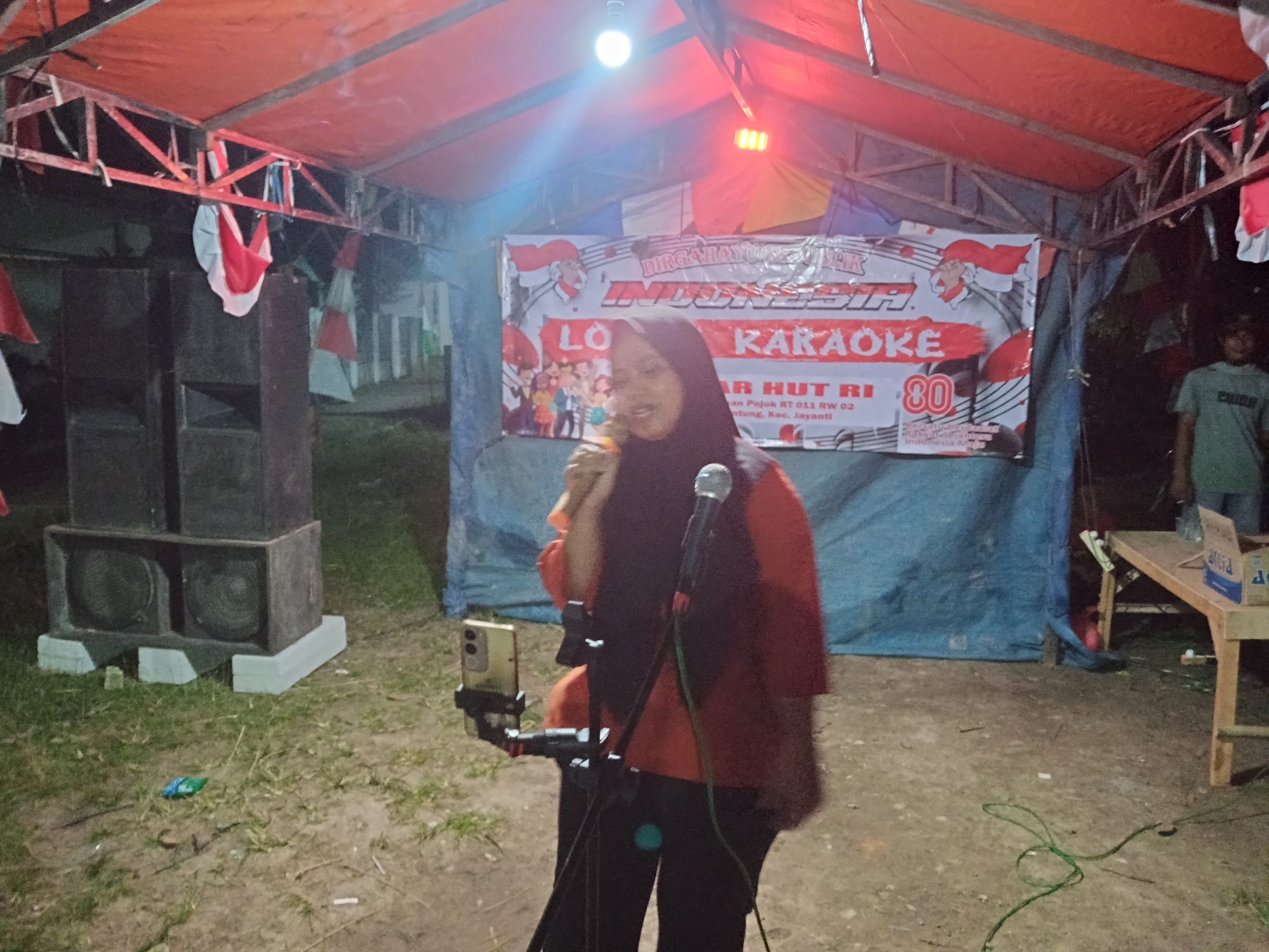 Acara yang berlangsung meriah ini diikuti oleh warga dari berbagai kalangan, baik anak-anak, remaja, hingga orang dewasa. Dengan penuh semangat, para peserta menunjukkan bakat bernyanyi mereka di atas panggung sederhana yang dihiasi nuansa merah putih.