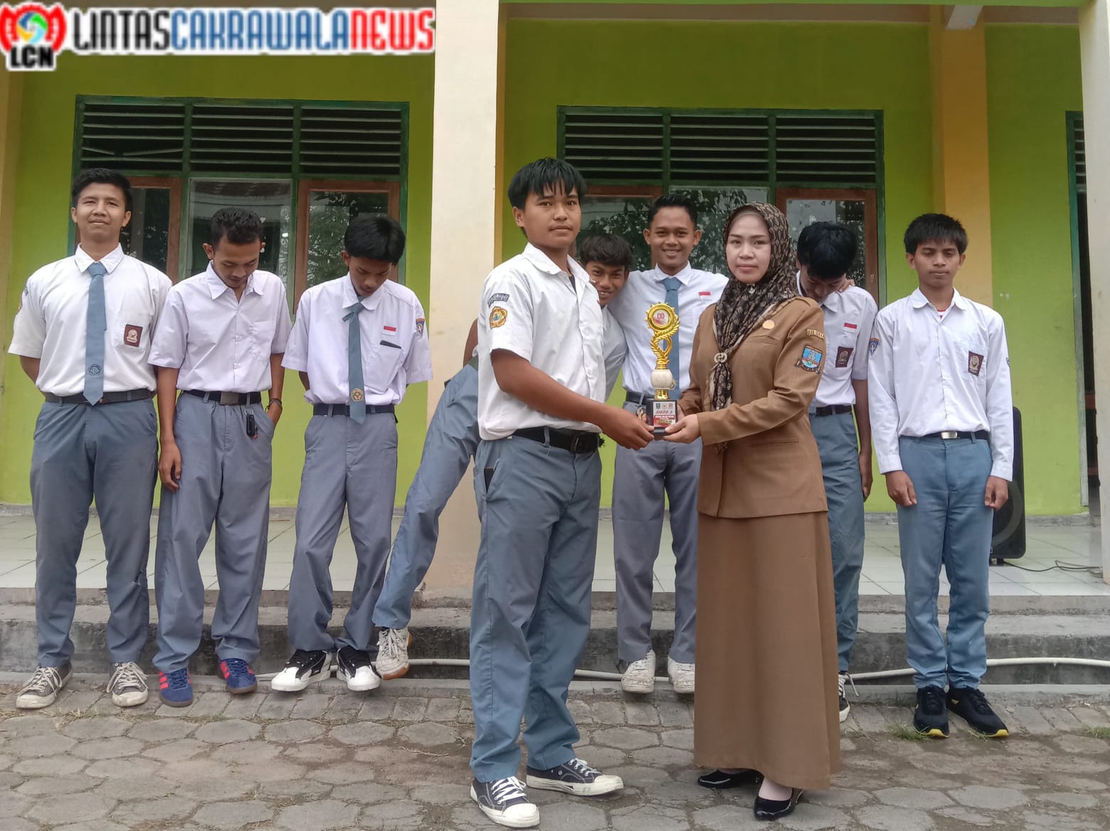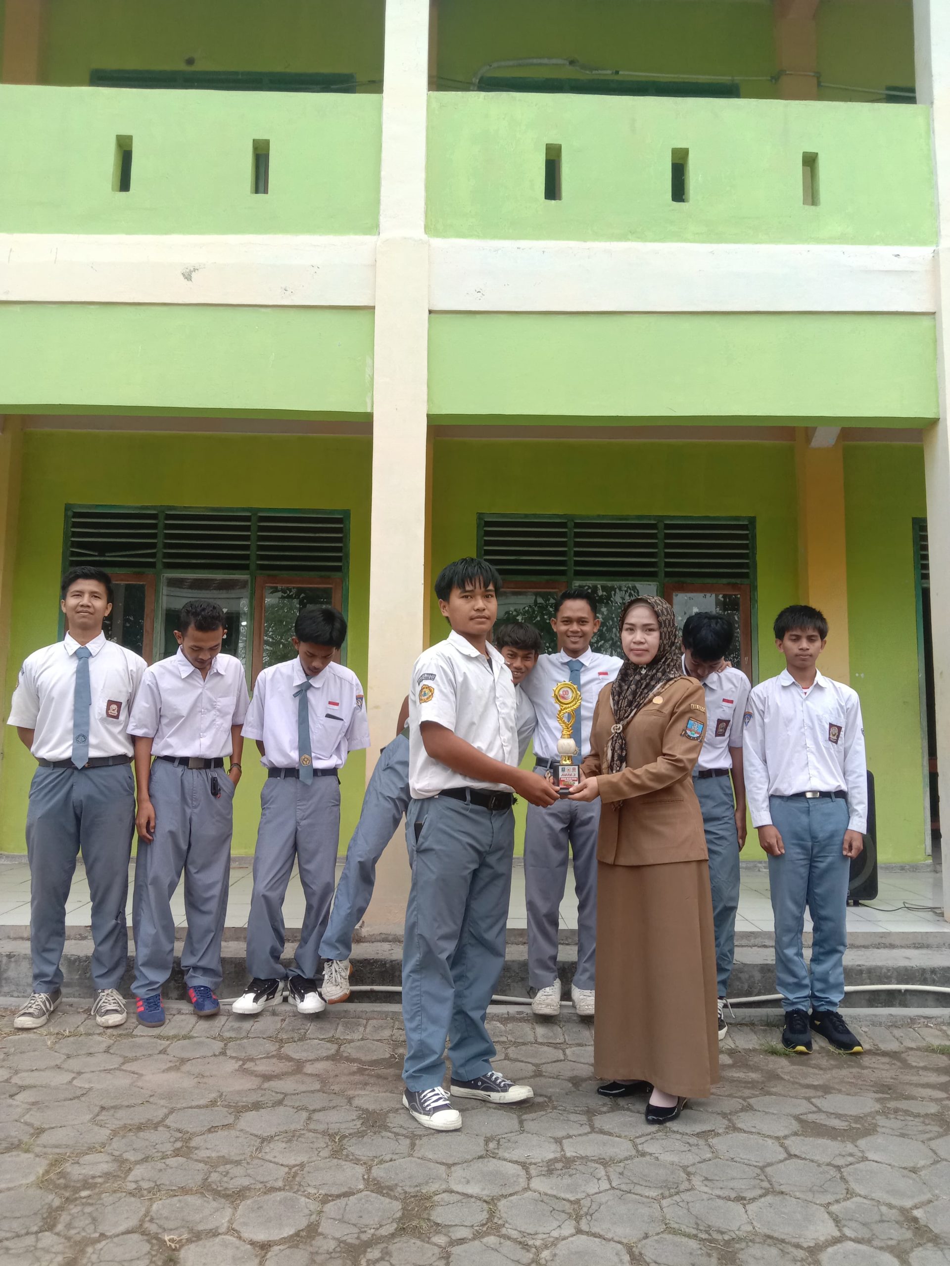 Penyerahan medali untuk lomba gerak jalan ini agar dapat memberikan semangat bagi guru dan siswa di sekolah kami.