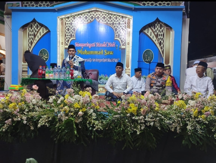 “Malam hari ini kami dari Polsek Curugbitung bersama jajaran anggota menghadiri acara kegiatan masyarakat dalam rangka memeriahkan peringatan hari besar Islam PHBI Maulid Nabi Muhammad Saw sekaligus monitoring kegiatan masyarakat supaya bisa berjalan dengan aman dan lancar.”Ujarnya Kapolsek Curugbitung Agus RM pada media.