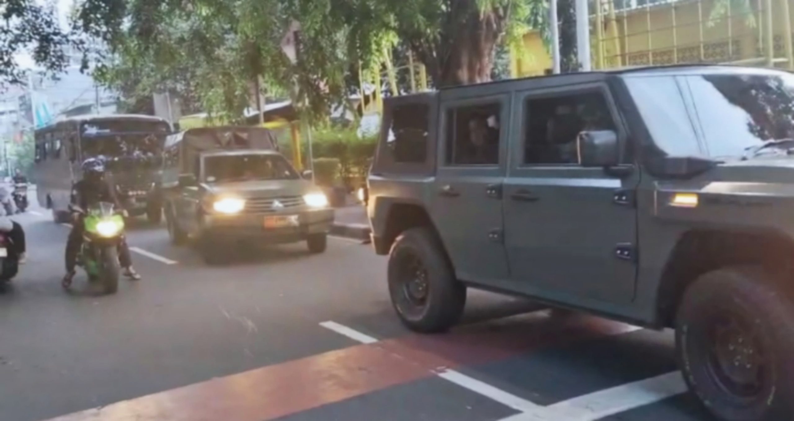 Dalam peringatan HUT ke-80 TNI, Presiden Republik Indonesia Prabowo Subianto datang menggunakan mobil kepresidenan dan diiringi pasukan berkuda dan tiba di Monas disambut oleh Menhan Sjafrie Sjamsuddin.