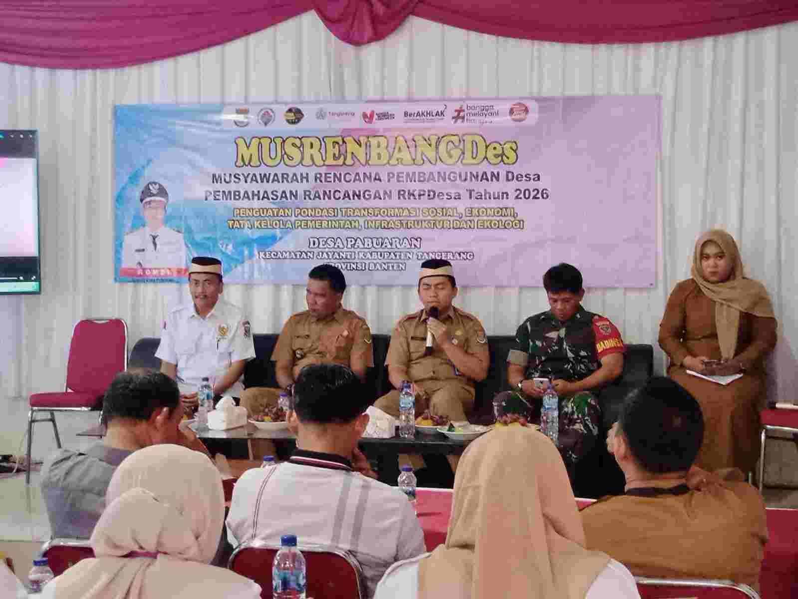 LINTASCAKRAWALANEWS.COM, || TANGERANG – Pemerintah Desa Pabuaran, Kecamatan Jayanti, Kabupaten Tangerang, menggelar Musyawarah Rencana Pembangunan Desa (Musrenbangdes) dalam rangka pembahasan Rancangan RKPDesa Tahun 2026, bertempat di aula kantor desa, Senin (06/10/2025).