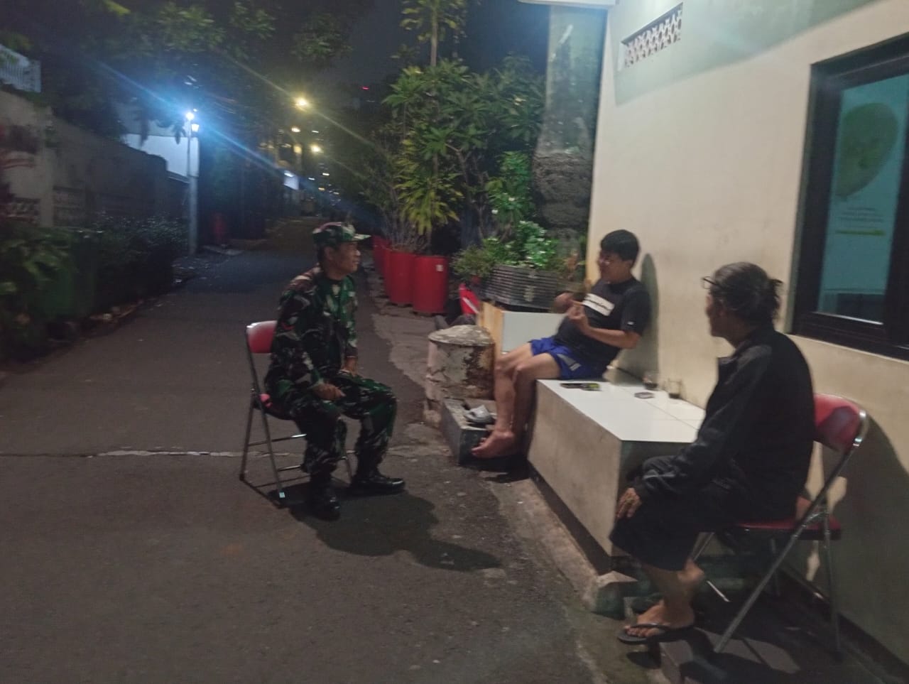LINTASCAKRAWALANEWS.COM, || Jakarta Barat – Dalam rangka menciptakan lingkungan yang aman dan nyaman, Babinsa Koramil 03/Grogol Petamburan Kopda Marko Wijaya melaksanakan Kegiatan Pam Swakarsa Siskamling bersama Komponen Pendukung (Komduk) Petugas Keamanan, bertempat di Jl. Palmerah Utara ll , Kelurahan Palmerah, Kecamatan Palmerah, Jakarta Barat. Sabtu Dinihari (11/10/2025).