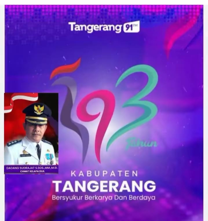 LINTASCAKRAWALANEWS.COM, TANGERANG – Camat Kelapa Dua Dadang Sudrajat, S.Sos., M.M., M.Si. mengucapkan Selamat Hari Jadi ke-393 Kabupaten Tangerang.