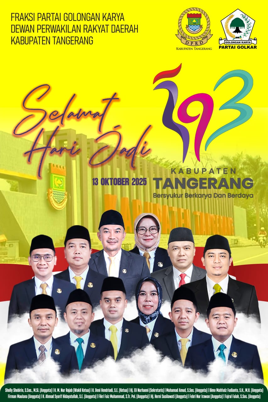 LINTASCAKRAWALANEWS, TANGERANG — Fraksi Partai Golongan Karya (Golkar) Dewan Perwakilan Rakyat Daerah (DPRD) Kabupaten Tangerang menyampaikan ucapan selamat dan rasa syukur atas peringatan Hari Jadi ke-393 Kabupaten Tangerang, yang diperingati pada 13 Oktober 2025.
