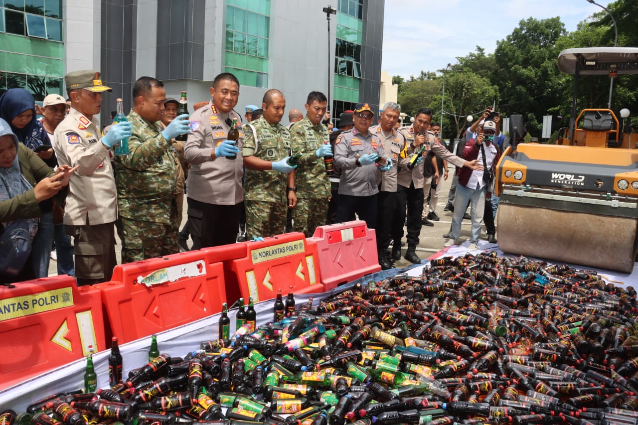 Barang bukti miras dimusnahkan dengan cara dilindas menggunakan mobil steam roller, sedangkan senjata tajam dan knalpot dimusnahkan menggunakan mesin gerinda.