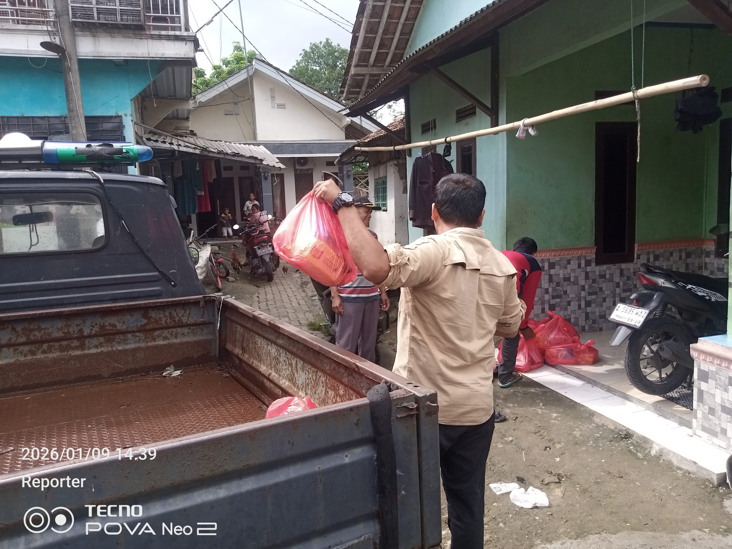 Bantuan sembako tersebut disalurkan oleh Pemerintah Kecamatan Jayanti melalui Satuan Polisi Pamong Praja (Satpol PP). Pemerintah kecamatan menyampaikan bahwa bantuan tersebut bersumber dari Dinas Sosial dan Badan Penanggulangan Bencana Daerah (BPBD) sebagai bentuk respons cepat terhadap musibah banjir yang melanda wilayah tersebut.