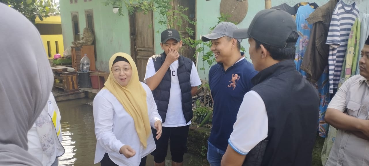 LINTASCAKRAWALANEW.COM, Kresek Kabupaten Tangerang – Wakil Bupati Tangerang Intan Nurul Hikmah bersama Anggota Dewan Kabupaten Tangerang Baequni dan H Usman Abdul Gani serta pimpinan Kantor Hukum Indonesia Muda Kabupaten Tangerang Hika Pristasia AP meninjau titik banjir di jalan raya Kresek Kampung Cibulan, Desa Pasir Patrasana, Kecamatan Kresek, Sabtu (24/1/2026).