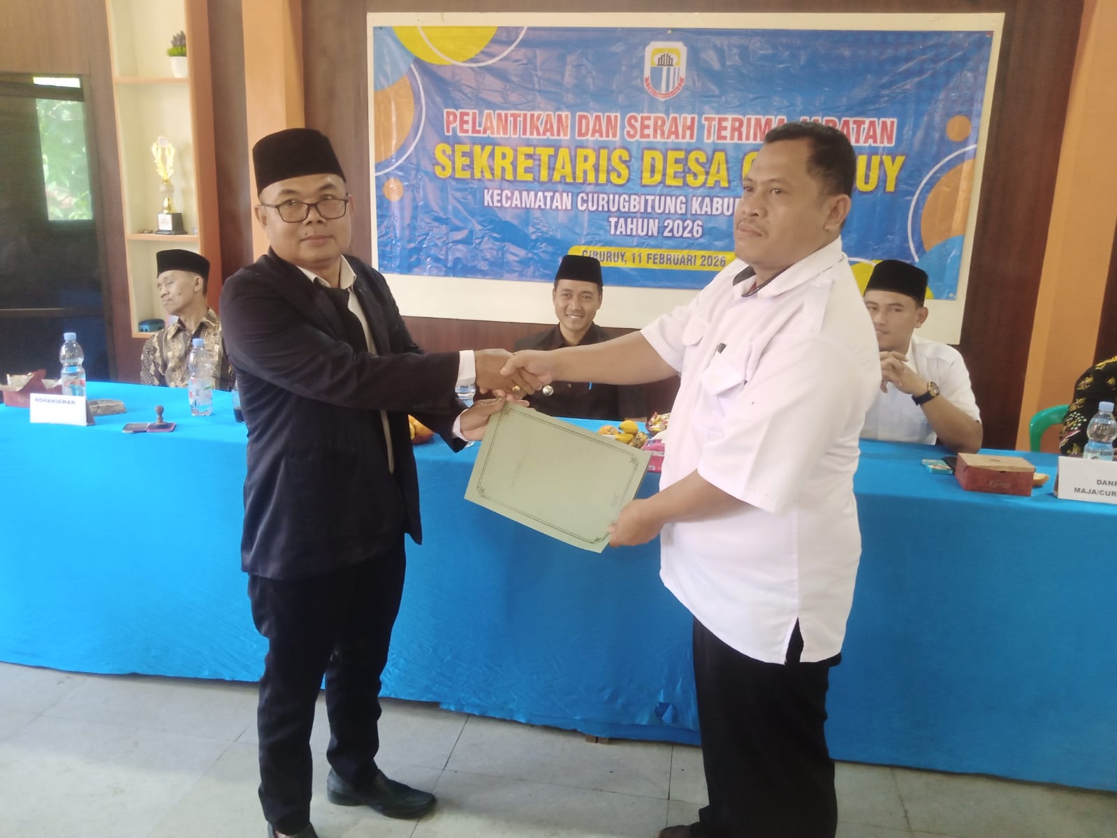 Lebak. Lintascakrawalanews.com – Serah terima jabatan (Sertijab) Sekertaris Desa (Sekdes) Profesi resmi penyerahan tugas tanggung jawab dan memori pejabat lama kepada pejabat baru. Pemerintah Desa Ciburuy Lantik Sekdes Baru di Aula Kantor Desa Ciburuy Kecamatan Curugbitung Kabupaten Lebak Banten Ratu 11/02/2026.