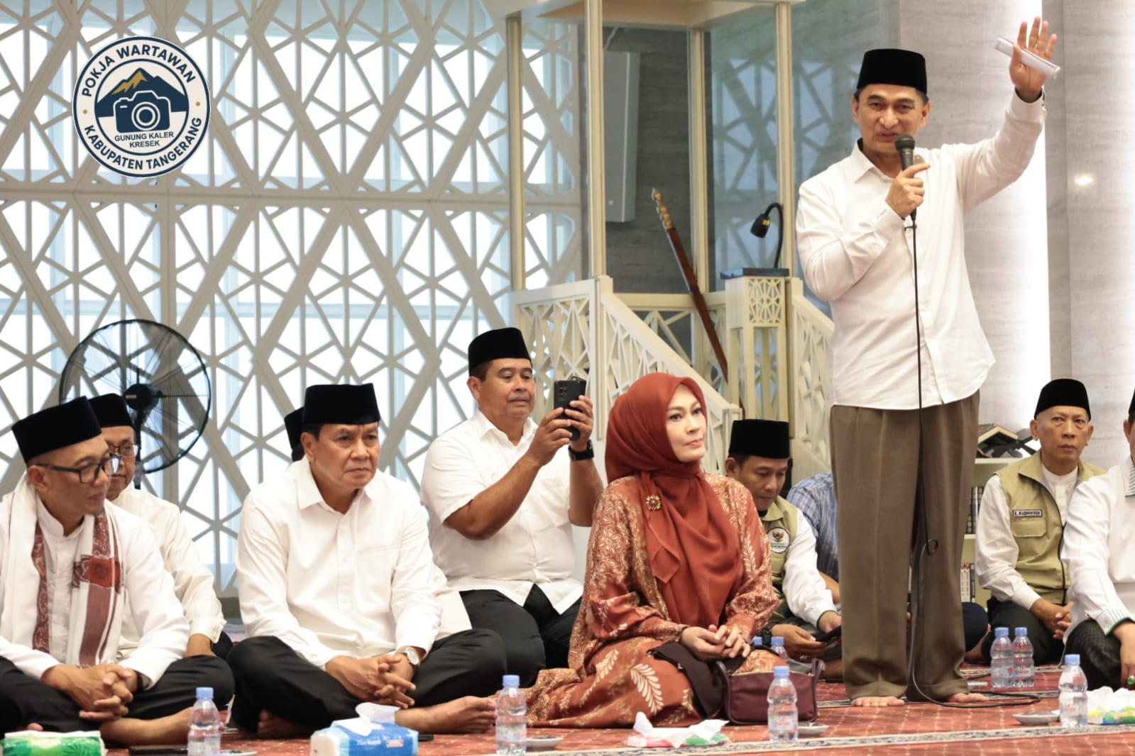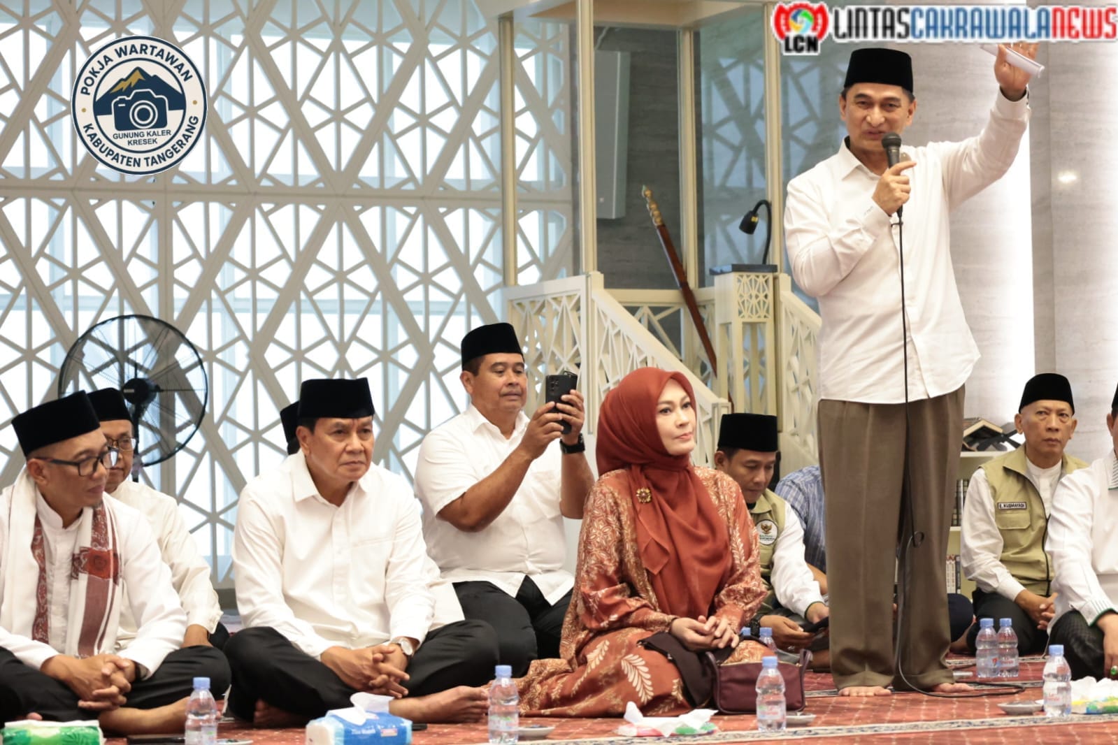 LINTASCAKRAWALANEWS.COM, TANGERANG, Bupati Tangerang Moch. Maesyal Rasyid mendampingi Wakil Gubernur Banten Dimyati Natakusuma dalam kegiatan Safari Ramadhan Provinsi Banten 1447 Hijriah yang digelar di Masjid Raya Baitul Mukhtar, Kecamatan Pagedangan, Rabu (4/3/26).