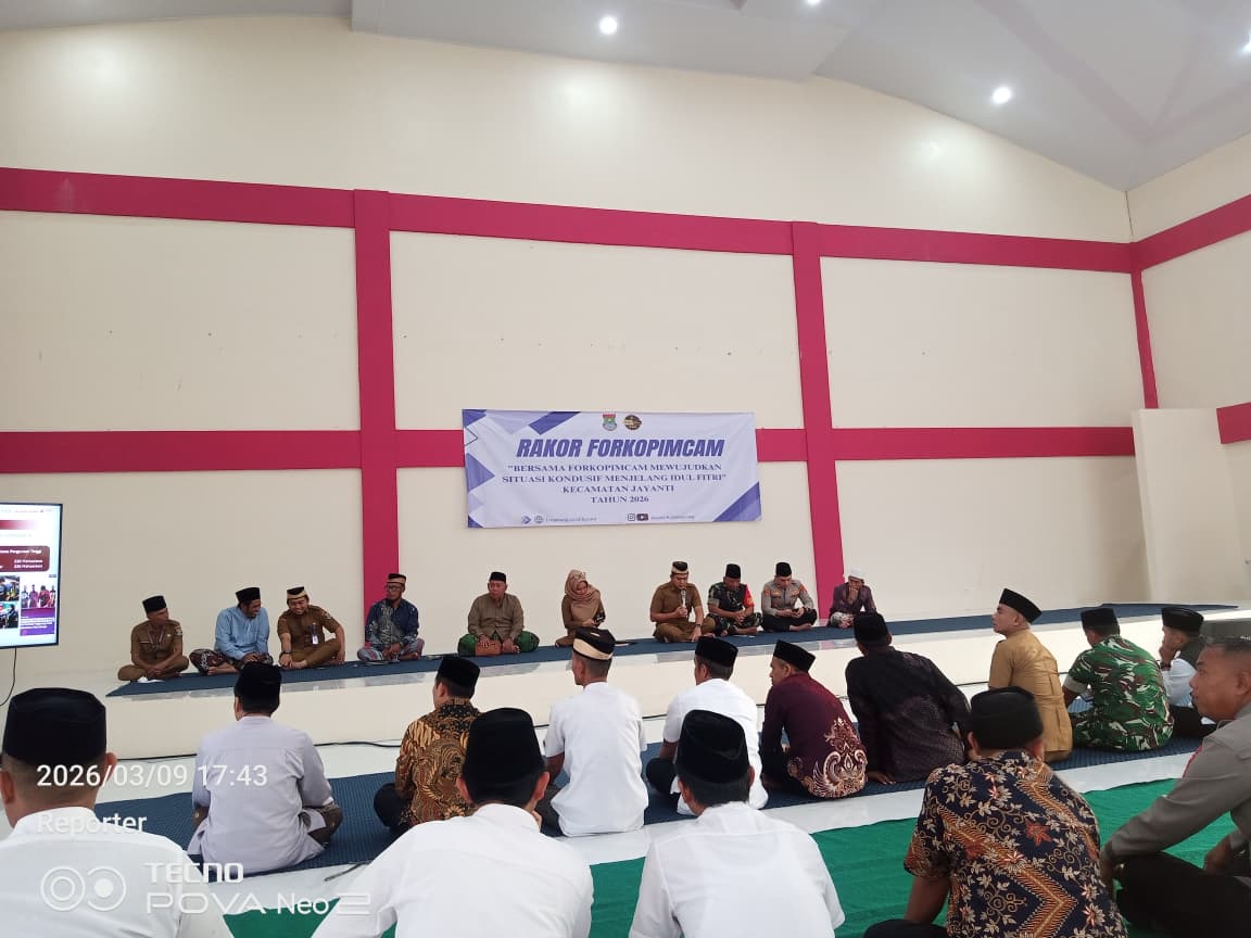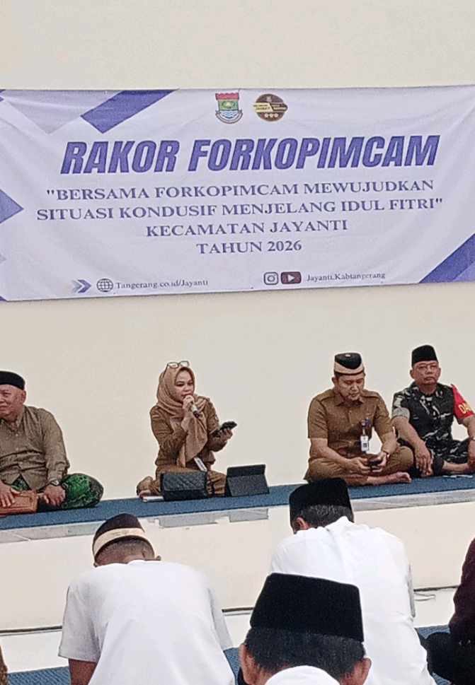 LINTASCAKRAWALANEWS.COM, | KABUPATEN TANGERANG – Dalam rangka menjaga situasi keamanan dan ketertiban masyarakat selama bulan suci Ramadhan 1447 H menjelang Hari Raya Idul Fitri, Forum Koordinasi Pimpinan Kecamatan (Forkopimcam) Jayanti menggelar Rapat Koordinasi (Rakor) yang dilaksanakan di Gedung Serba Guna (GSG) Kecamatan Jayanti, Kabupaten Tangerang, Senin (9/3/2026).