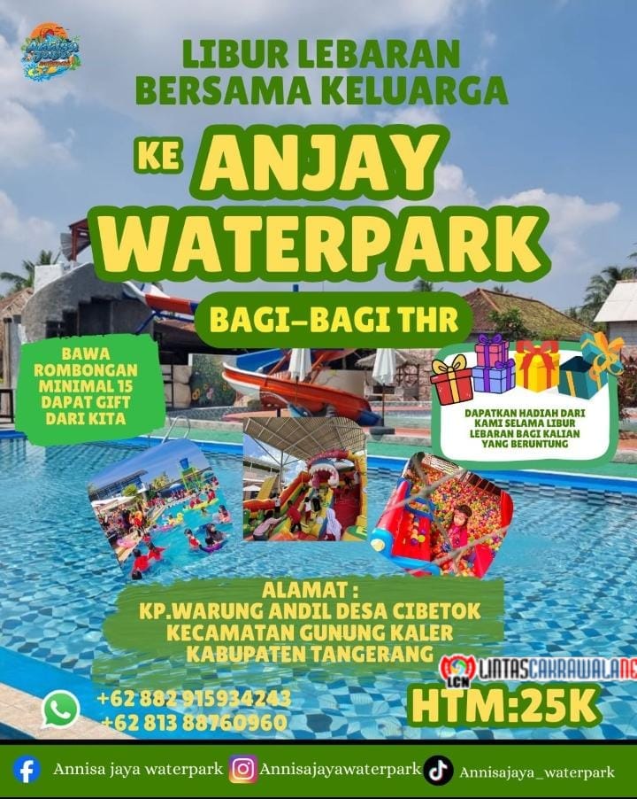 LINTASCAKRAWALANEWS.COM, TANGERANG – Suasana libur Lebaran memang selalu dinantikan untuk berkumpul bersama keluarga. Menghabiskan waktu di tempat rekreasi air menjadi salah satu pilihan favorit masyarakat, dan Waterpark Annisa Jaya hadir sebagai destinasi yang tepat untuk mengisi momen tersebut.