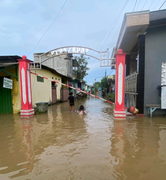 Perumahan tersebut berada di dataran yang lebih rendah dan berdekatan dengan aliran sungai, sehingga air mudah meluap ke permukiman warga.