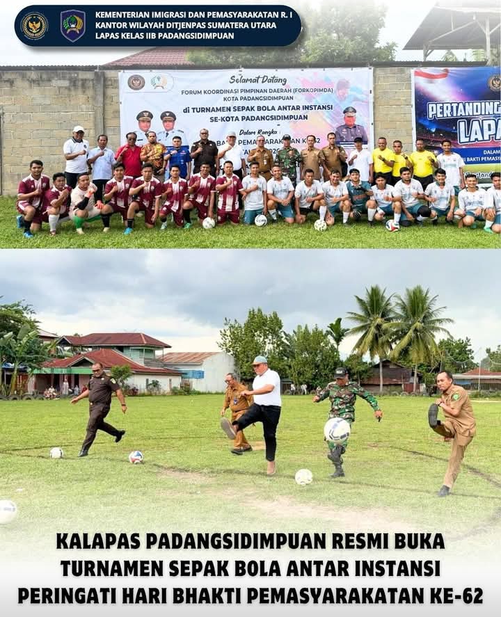 Pembukaan turnamen secara simbolis ditandai dengan tendangan bola pertama oleh Kalapas Padangsidimpuan yang didampingi oleh Sekretaris Daerah Kota Padangsidimpuan. Sorak sorai peserta dan penonton menambah semarak suasana, menandai dimulainya pertandingan yang diharapkan berjalan dengan menjunjung tinggi nilai sportivitas.