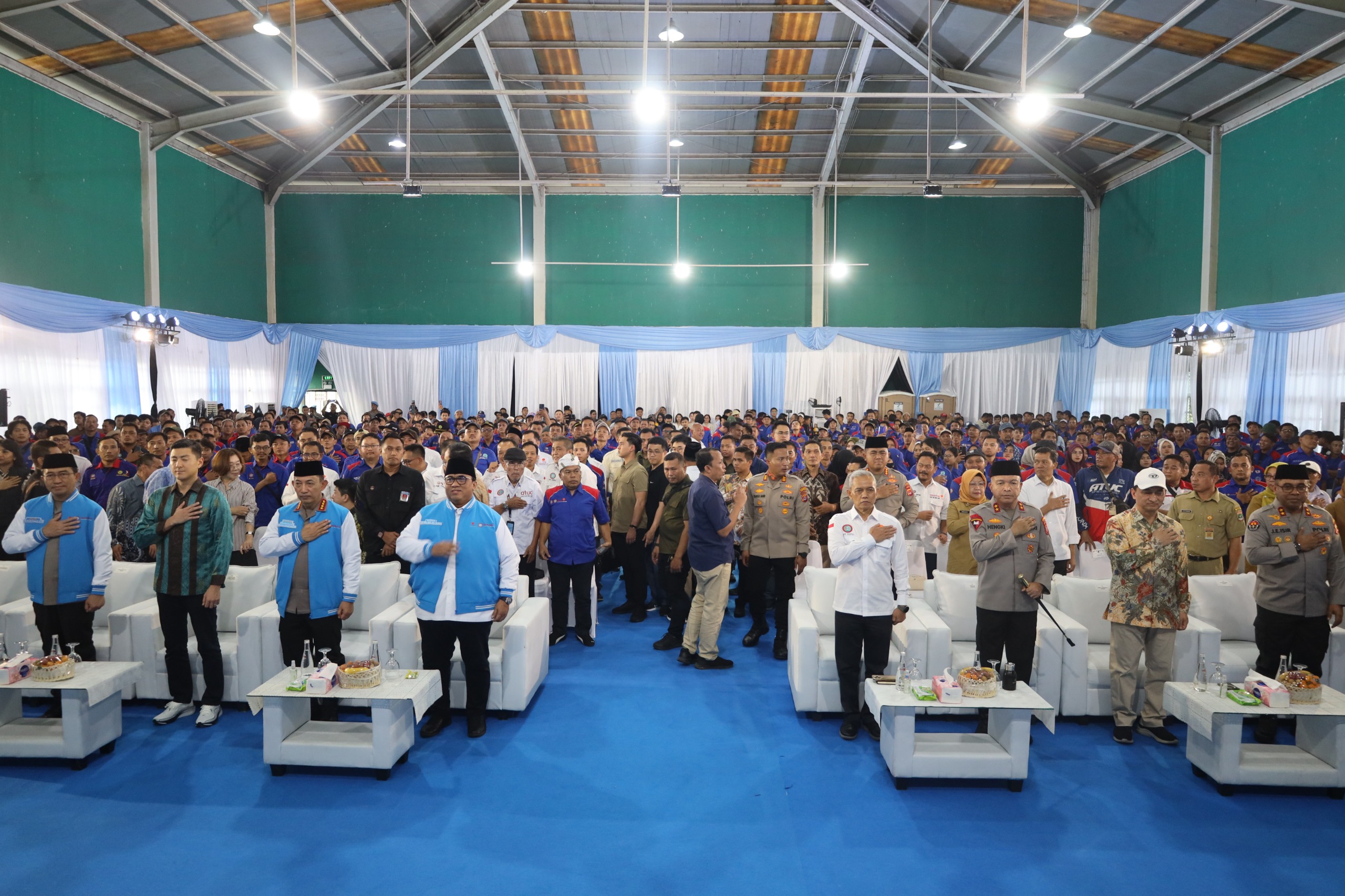 Turut hadir dalam kegiatan tersebut Presiden KSPSI Andi Gani Nena Wea, jajaran PJU Mabes Polri, CEO PT. KMK Global Sports, C.K Song, Kapolda Banten Irjen Pol Hengki, Wakil Gubernur Banten Achmad Dimyati Natakusumah, serta unsur Forkopimda Tangerang.