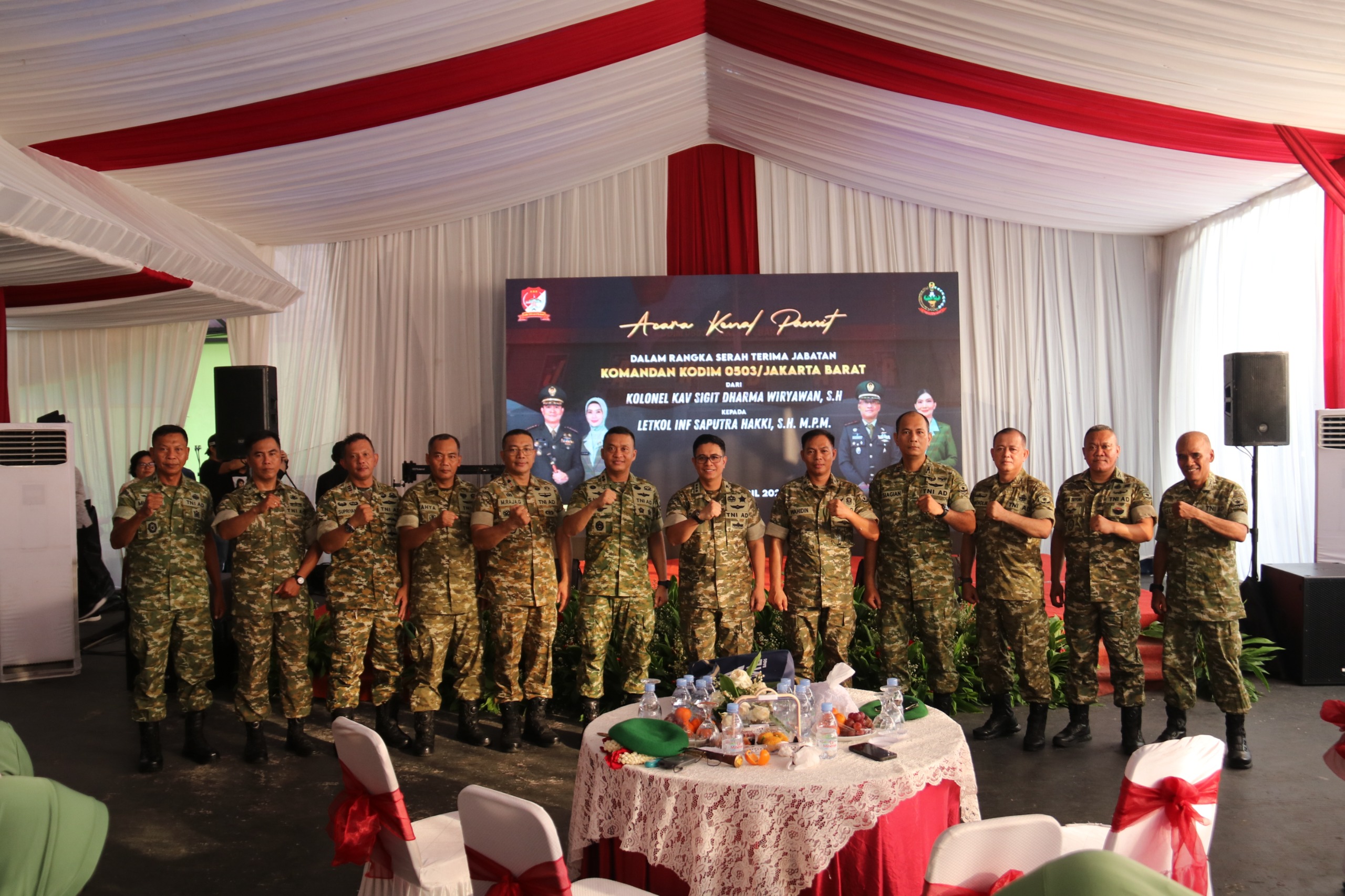 LINTASCAKRAWALANEWS.COM, || Jakarta Barat – Kodim 0503/JB menggelar Acara Tradisi Penyambutan dan Penerimaan serta Kenal Pamit dalam rangka Serah Terima Jabatan (Sertijab) Dandim 0503/Jakarta Barat dari Kolonel Kav Sigit Dharma Wiryawan, S.H., kepada Letkol Inf Saputra Hakki, S.H., M.P.M., bertempat di Halaman Makodim 0503/JB Jl. Letjen S. Parman, Kelurahan Tomang, Kecamatan Grogol Petamburan, Jakarta Barat, Sabtu (18/4/2026). Siang.