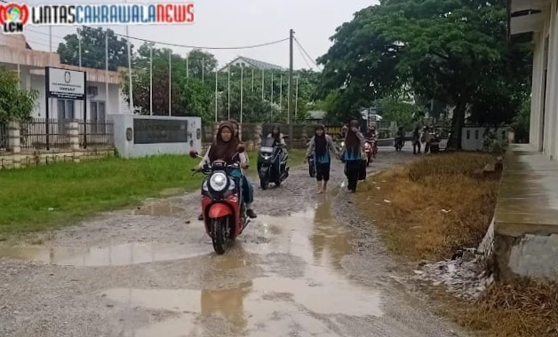 Menurut keterangan siswa yang diinfut tim, bahwa kalau hujan, kami susah jalan. Licin sekali, sudah banyak kawan yang jatuh karena lubang nggak kelihatan ketutup air,” ujar salah seorang siswa yang enggan disebut namanya lewat media, Sabtu 25 April 2026.