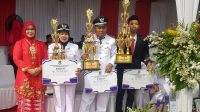 Puncak Upacara Penurunan Bendera Merah Putih, Kades Kedung Borong Piala Juara Umum Tingkat Kecamatan Gunung Kaler.