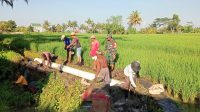 Saluran Irigasi Subak Jebol, Babinsa Bersama Petani Melakukan Perbaikan